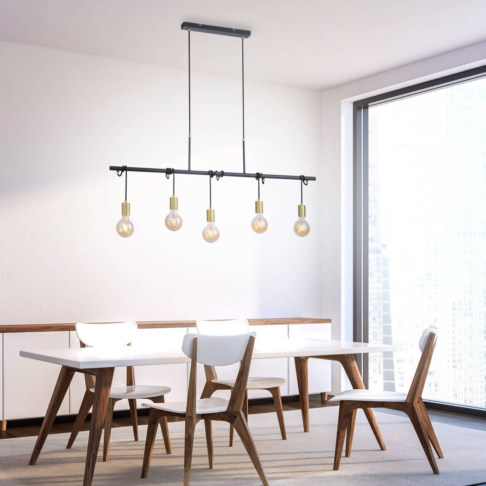 JUST LIGHT. Závěsné světlo Tamara, pět zdrojů, mosaz/černá, Obývací pokoj / jídelna, kov, E27, 40W, P: 120 cm, L: 6 cm