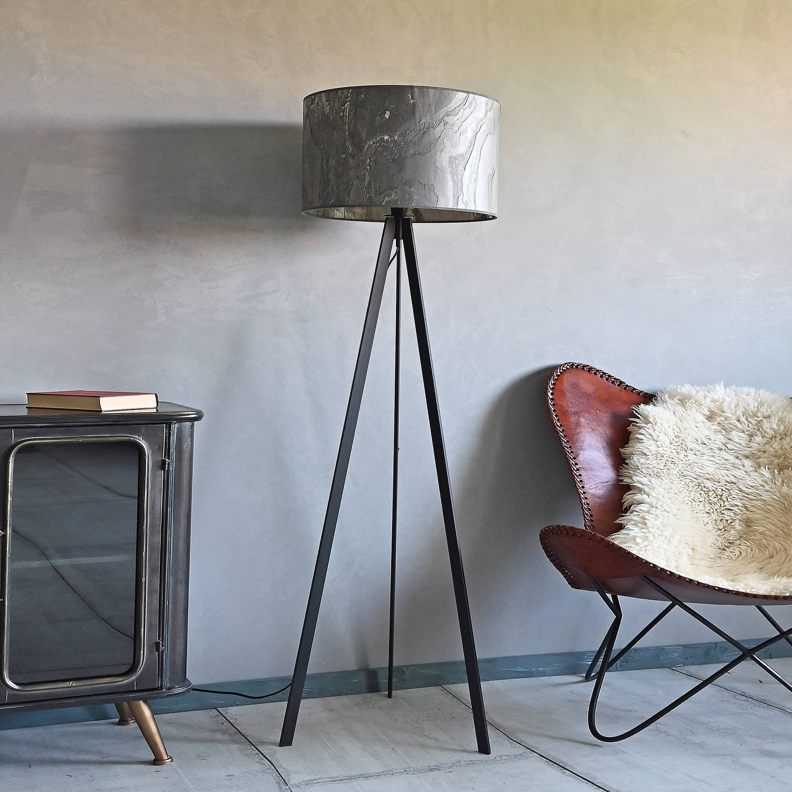 LeuchtNatur Atticus stojací lampa břidlice černá, Obývací pokoj / jídelna, břidlicový kámen, kov, E27, 12W, K: 150cm