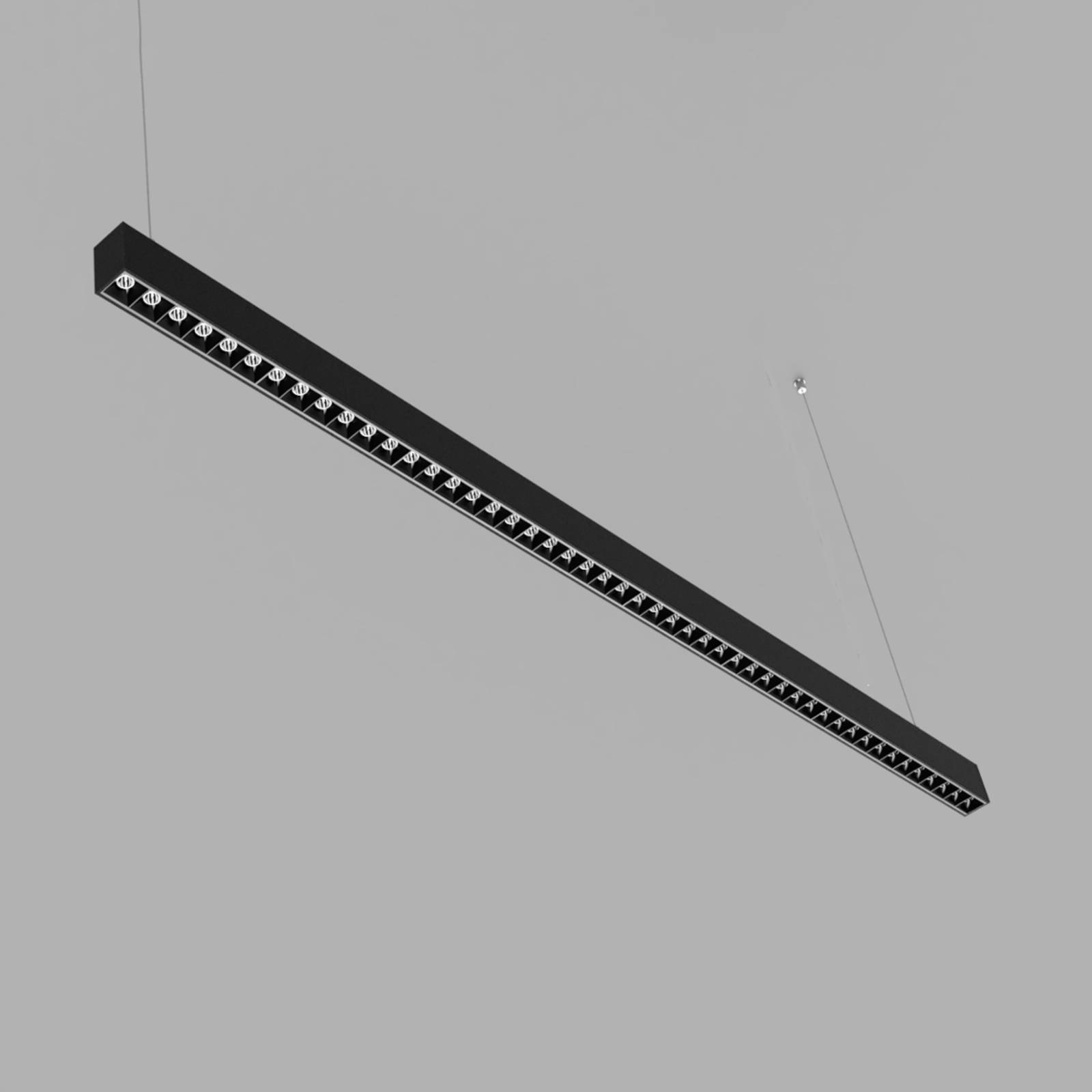 LI-EX Kancelářská LED závěsná lampa Remote 130cm černá, Pracovna / kancelář, hliník s práškovým lakem, 52W, P: 130 cm, L: 3.6 cm, K: 5.4cm