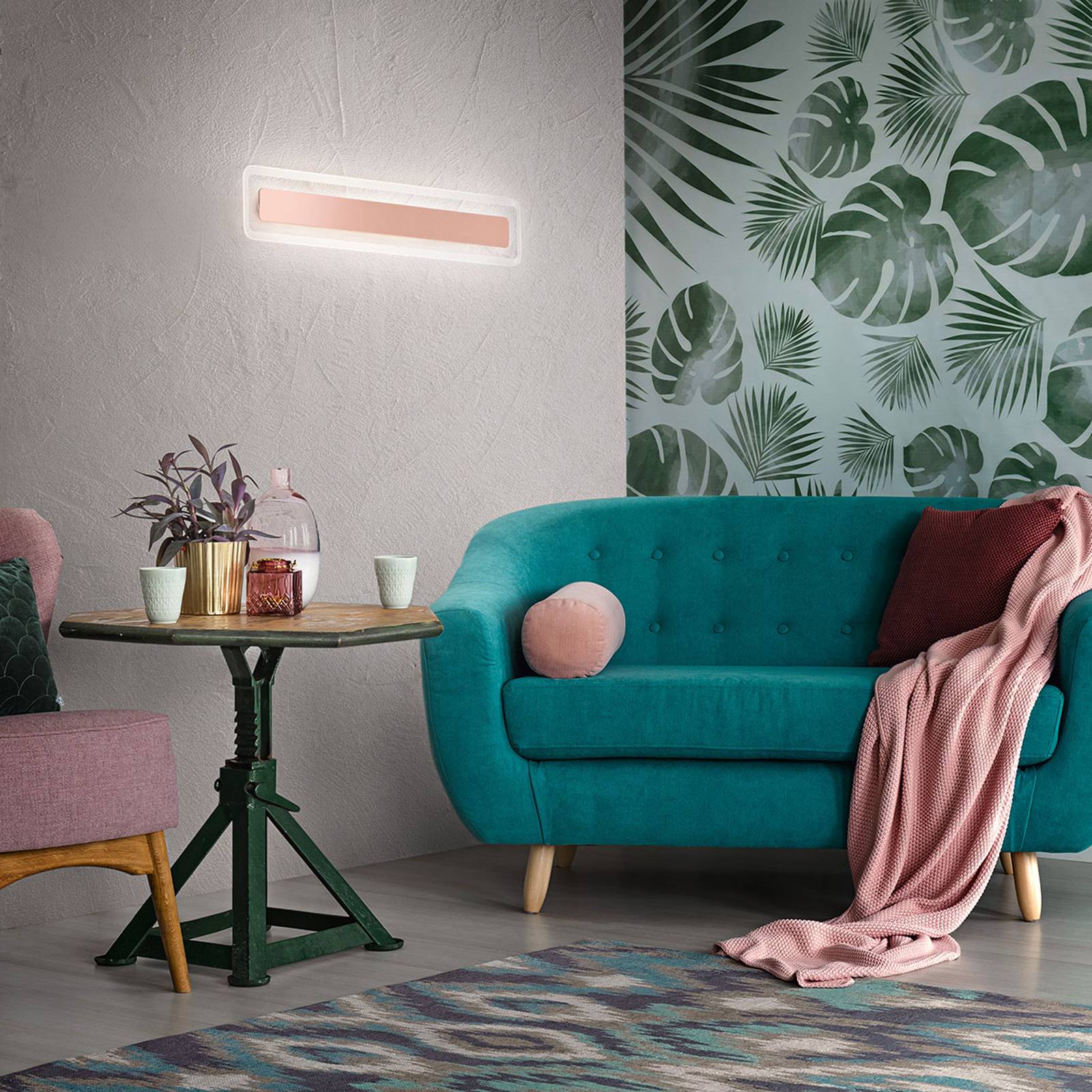 Linea Light LED nástěnné světlo Antille měď 61, 4 cm, Obývací pokoj / jídelna, sklo, železo, 28W, L: 61.4 cm, K: 13.5cm