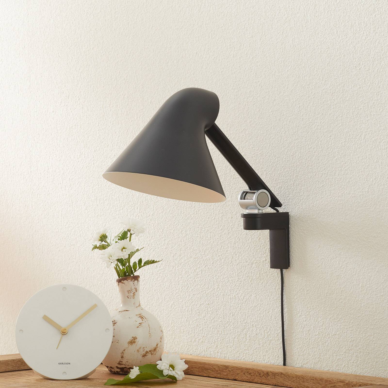 Louis Poulsen NJP nástěnné světlo krátké, černá, Obývací pokoj / jídelna, hliník, 10W, K: 20cm