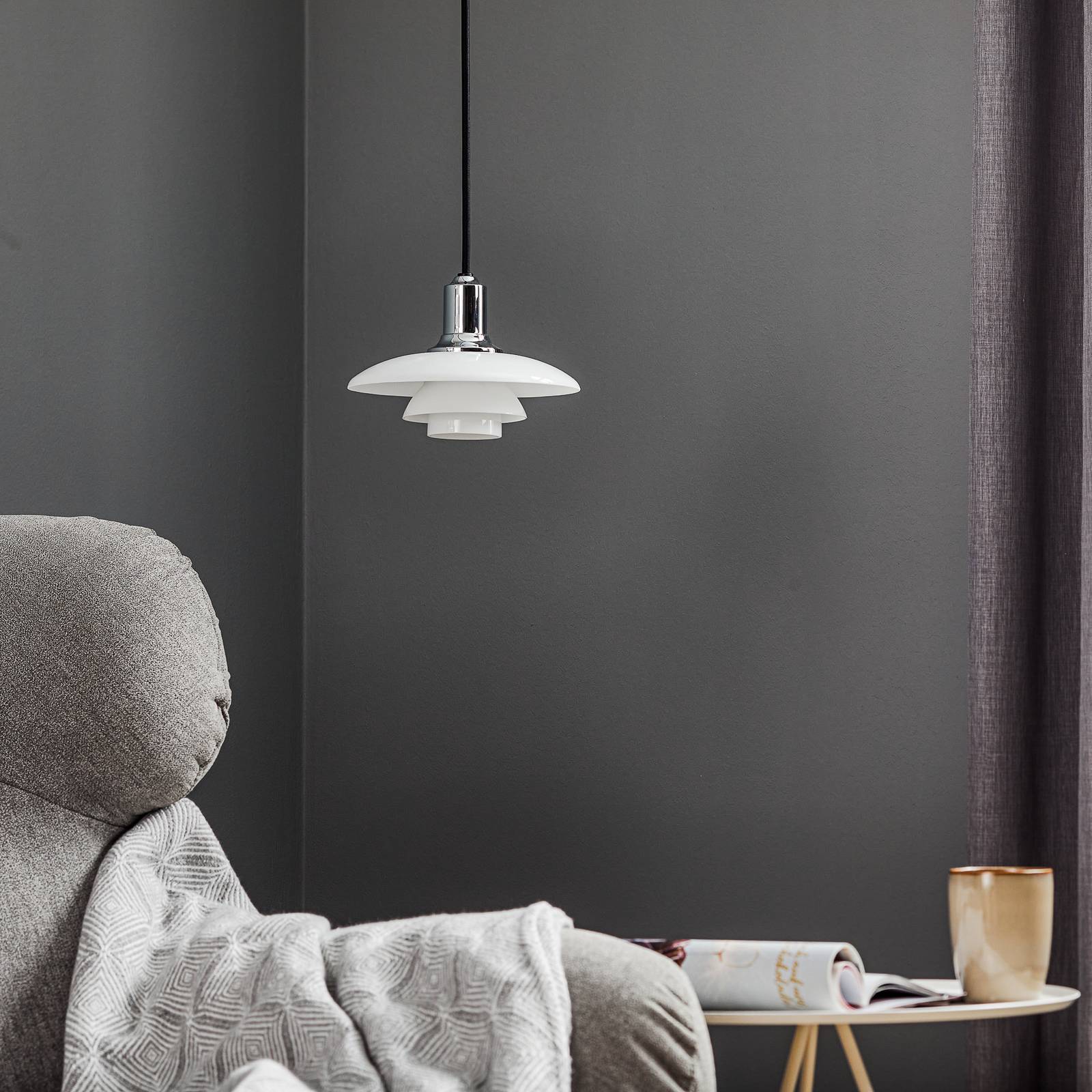 Louis Poulsen PH 2/1 skleněné závěsné světlo, chrom, Obývací pokoj / jídelna, hliník, sklo, E14, 40W, K: 14cm