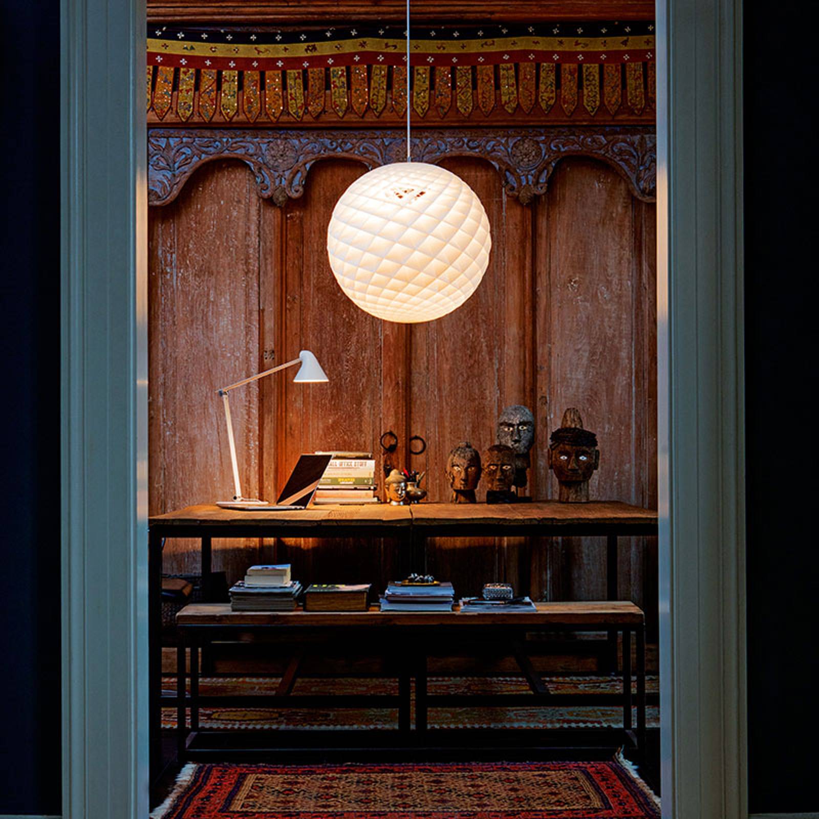 Louis Poulsen Patera závěsné světlo bílé 90 cm, Obývací pokoj / jídelna, mosaz, akryl, PVC, E27, 100W, K: 86.5cm