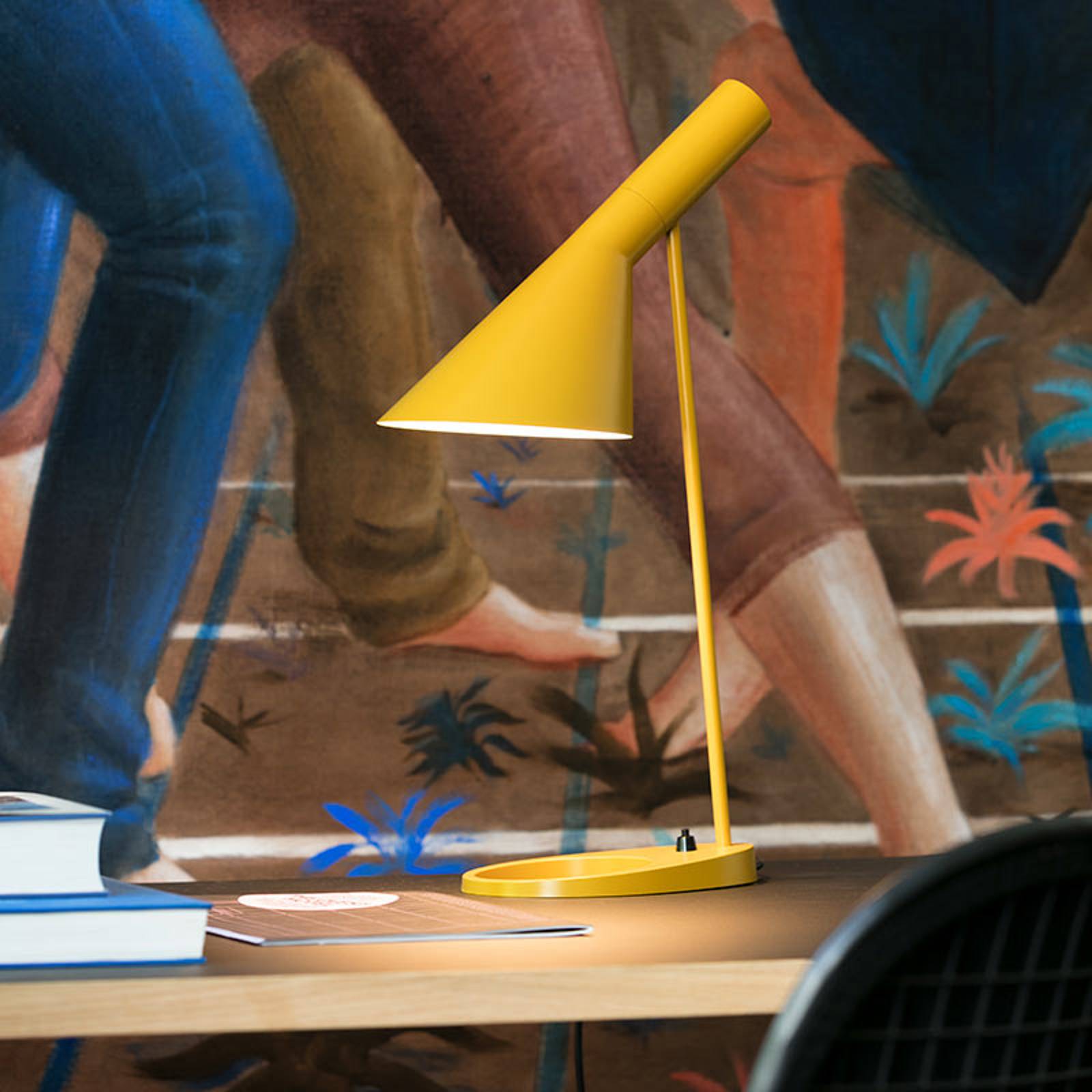 Louis Poulsen AJ – designová stolní lampa, okrová, Obývací pokoj / jídelna, ocel, zinkový odlitek, E27, 20W, L: 16 cm, K: 56cm