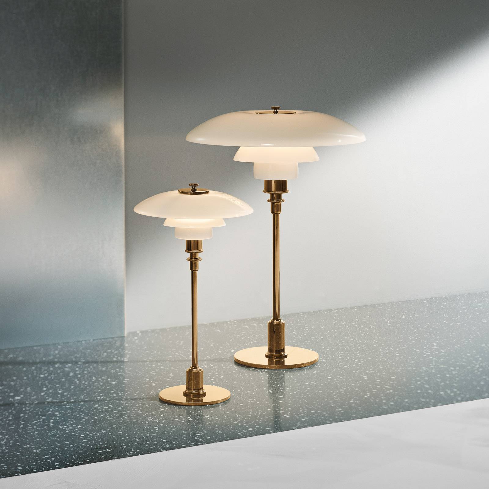 Louis Poulsen PH 2/1 stolní lampa mosaz-bílá, Obývací pokoj / jídelna, mosaz, sklo, G9, 33W, K: 35.5cm