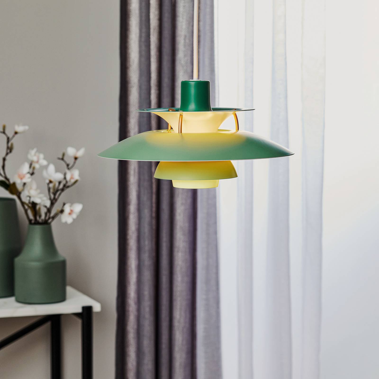 Louis Poulsen PH 5 Mini – závěsné světlo, zelené, Obývací pokoj / jídelna, hliník, E14, 40W, K: 16.3cm