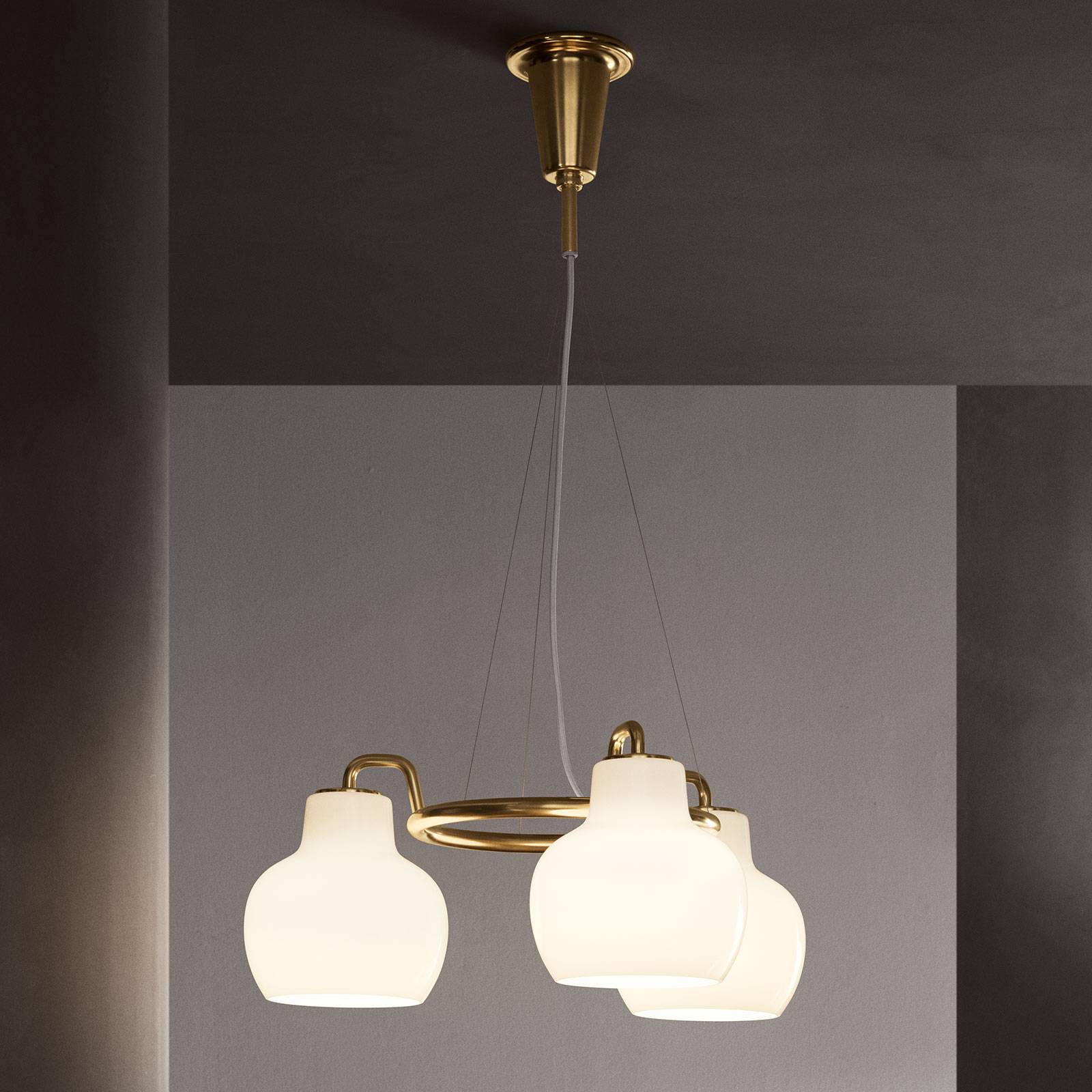 Louis Poulsen závěsné světlo VL Ring Crown 3zdroje, Obývací pokoj / jídelna, mosaz, sklo, E27, 40W, K: 23.3cm