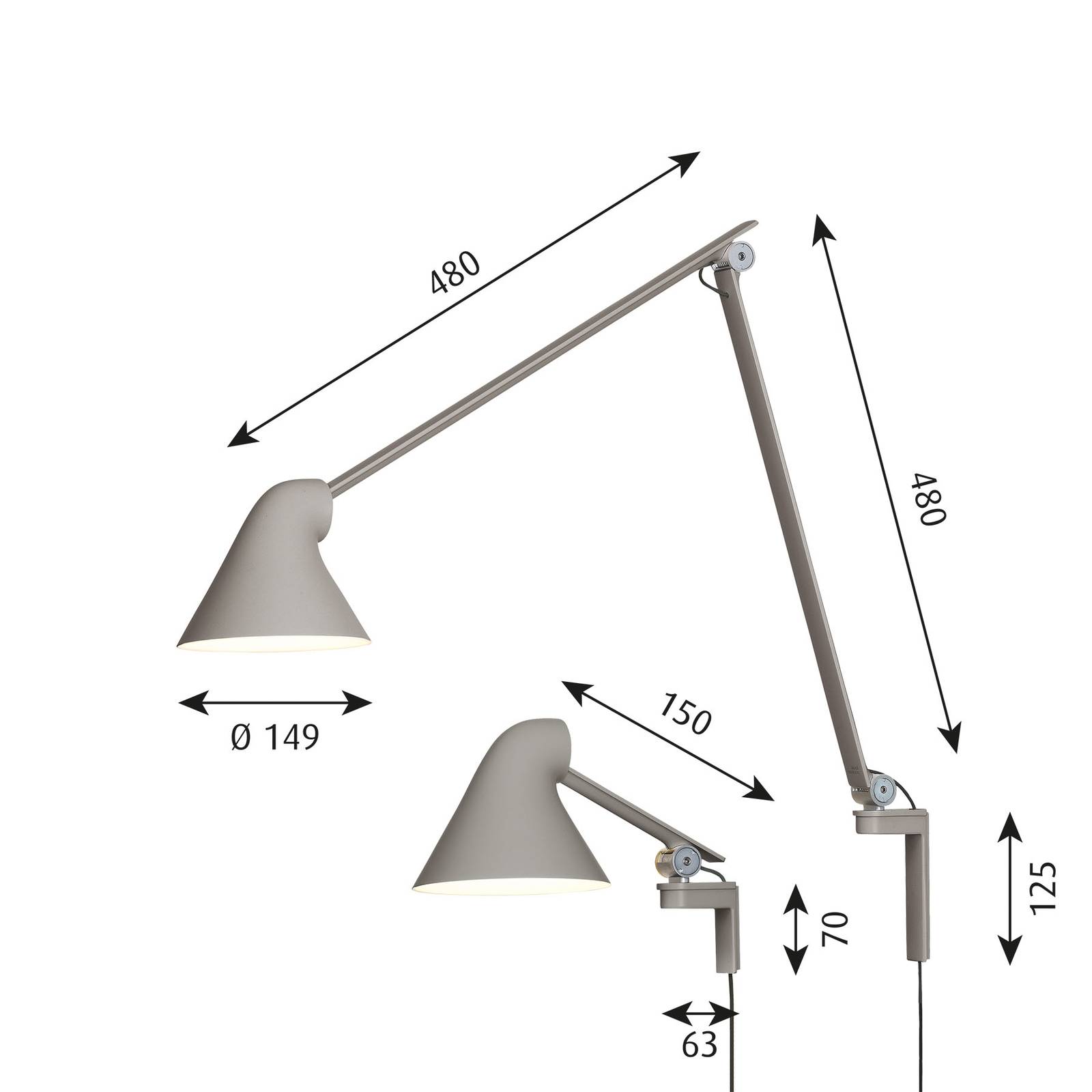 Louis Poulsen NJP LED nástěnné světlo dlouhé šedá, Obývací pokoj / jídelna, hliník, 10W, K: 60.5cm
