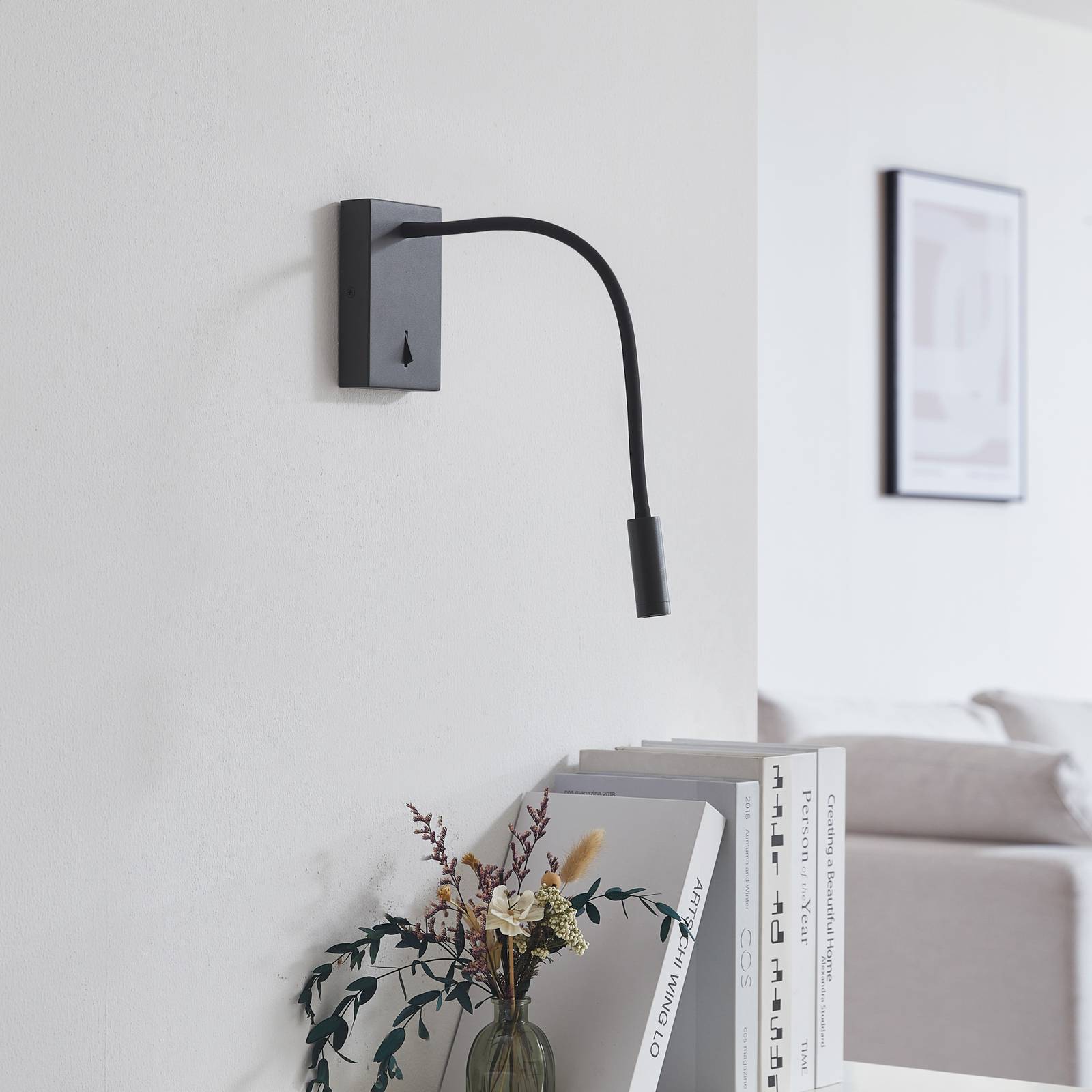 Lucande LED lampička na čtení Hetti, černá, kov, výška 14 cm, Ložnice, Kov, 2.3W, L: 9 cm, K: 14cm