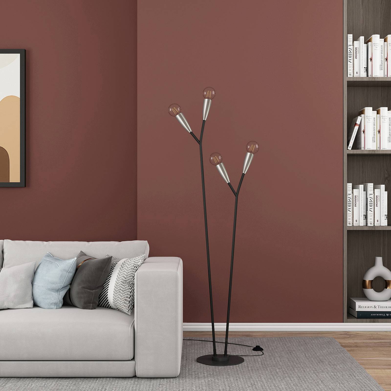 Lucande Carlea stojací lampa, 4žár., černá-nikl, Obývací pokoj / jídelna, kov, E27, 60W, K: 154cm