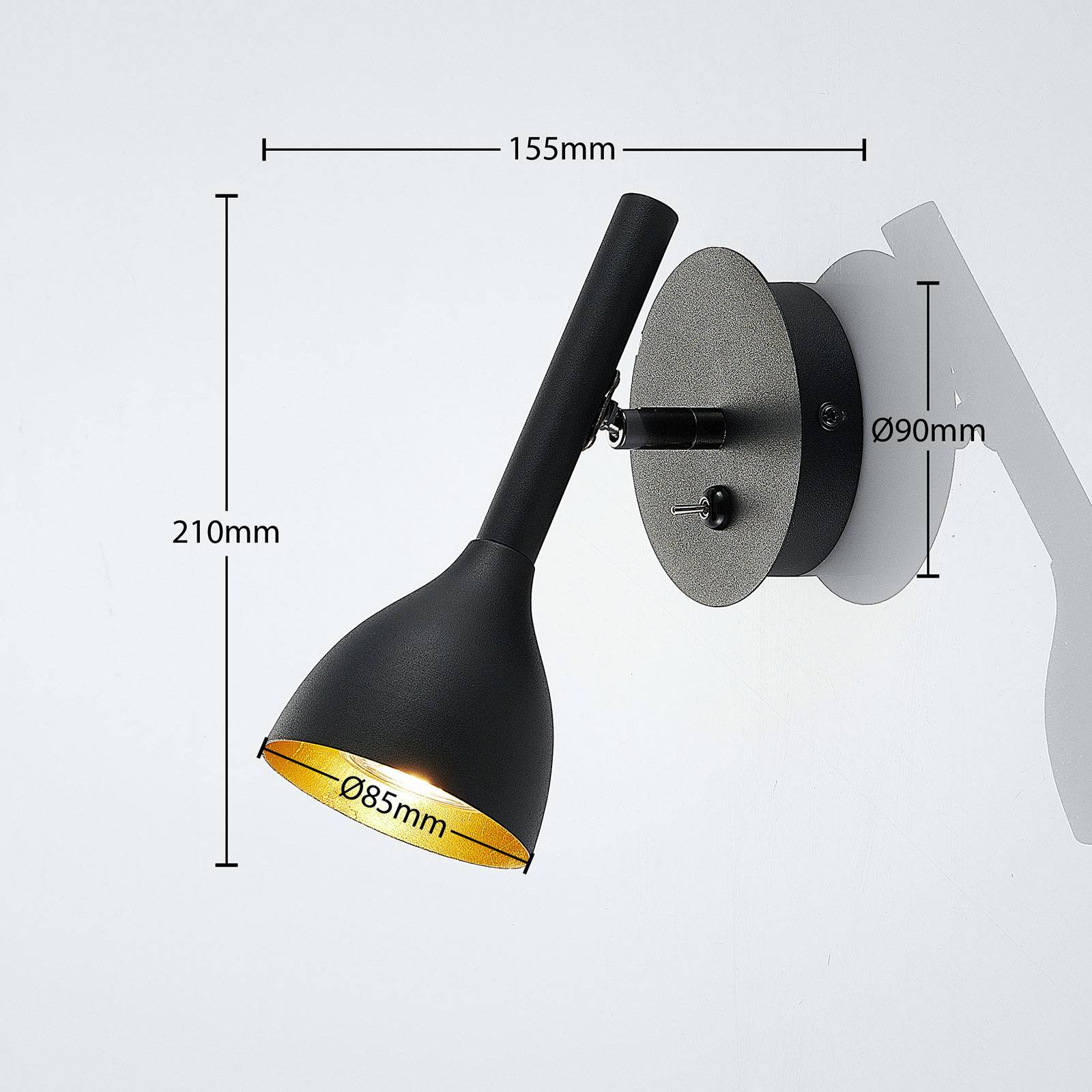 Lucande Nástěnné světlo Nordwin z kovu, černo-zlaté, Ložnice, kov, GU10, 28W, L: 11 cm, K: 21cm