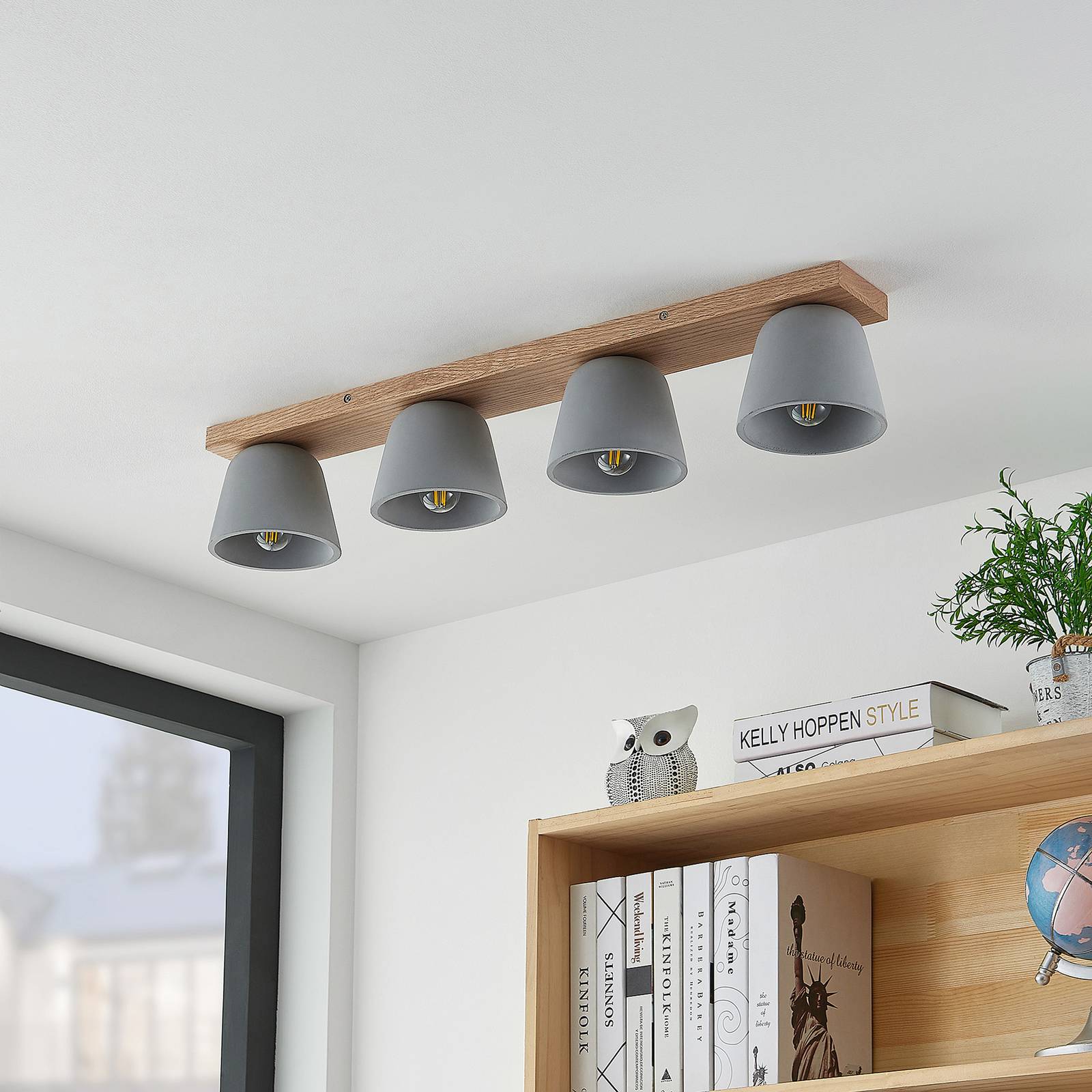 Lucande Otavis stropní světlo z betonu, 4 zdroje, Obývací pokoj / jídelna, beton, dubové dřevo, E14, 8W, P: 80 cm, L: 15 cm, K: 14cm