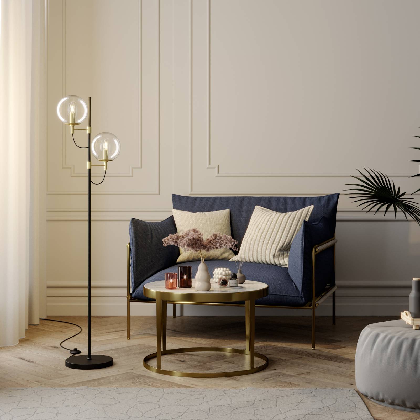 Lucande Sotiana stojací lampa, koule, mosaz, Obývací pokoj / jídelna, sklo, kov, E14, 40W, L: 42.6 cm, K: 158.2cm