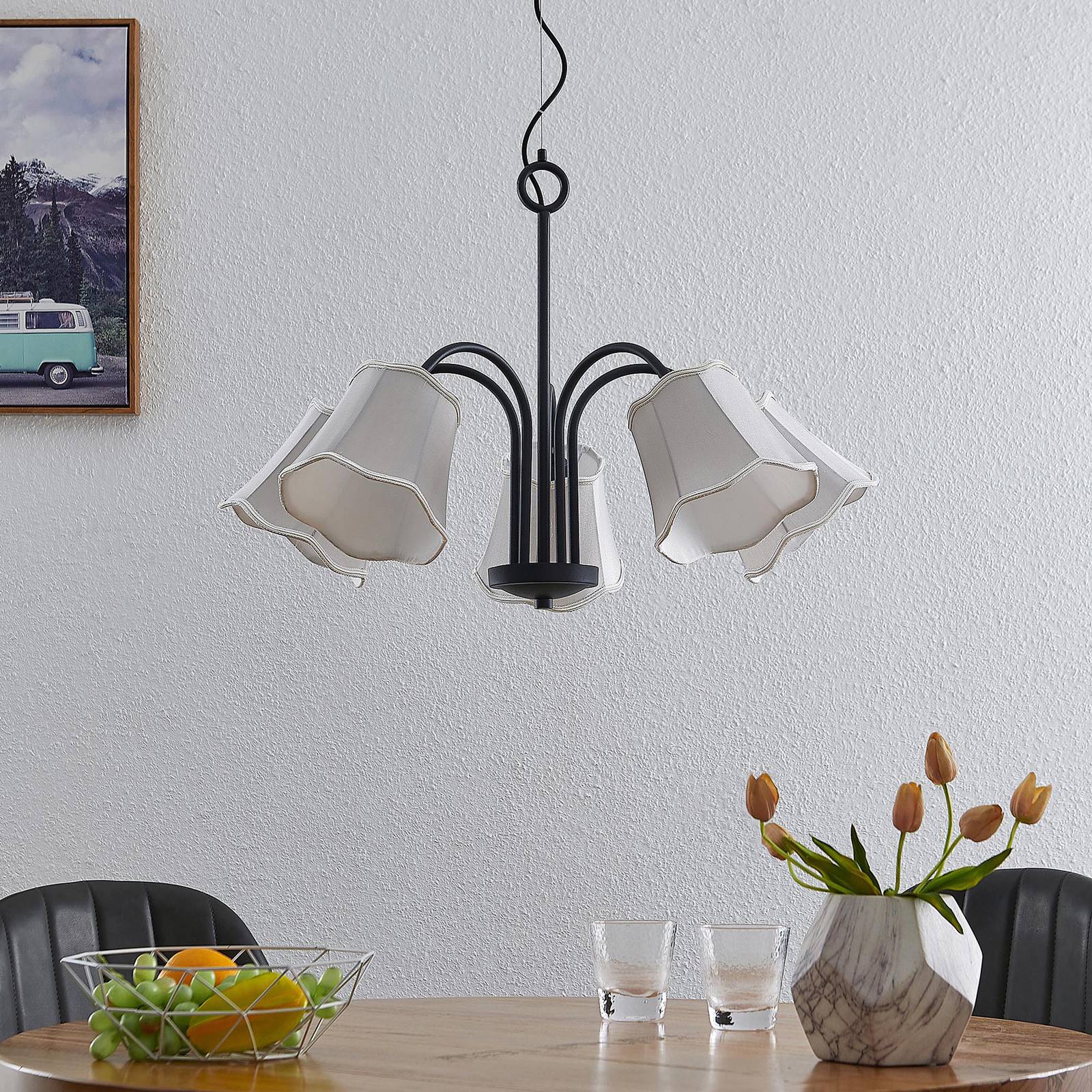 Lucande Binta závěsné světlo 5 zdrojů, stříbrošedá, Obývací pokoj / jídelna, tkanina, železo, E14, 40W