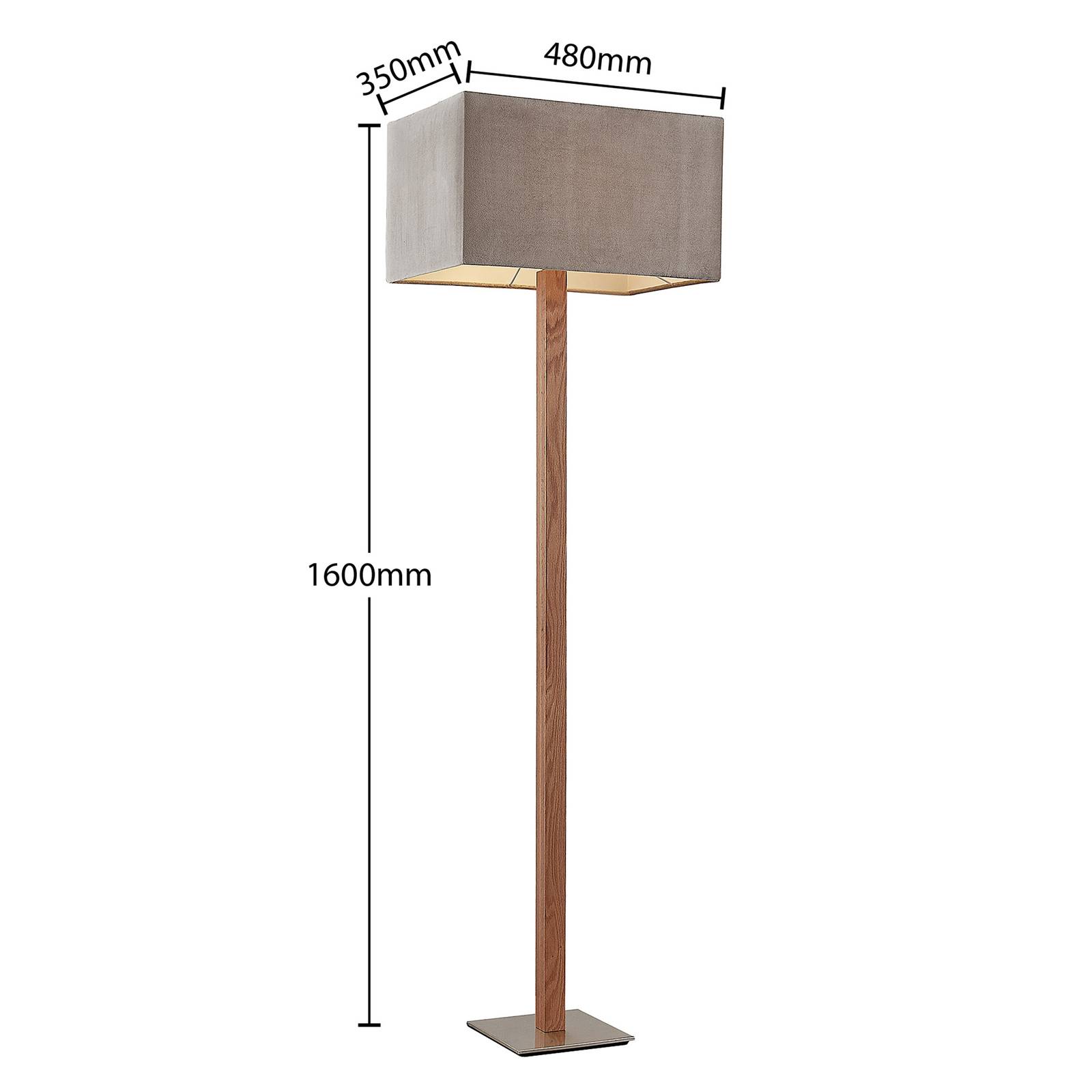 Lucande Heily stojací lampa, hranatá, šedá, Obývací pokoj / jídelna, železo, textil, dubové dřevo, E27, 60W, L: 48 cm, K: 160cm