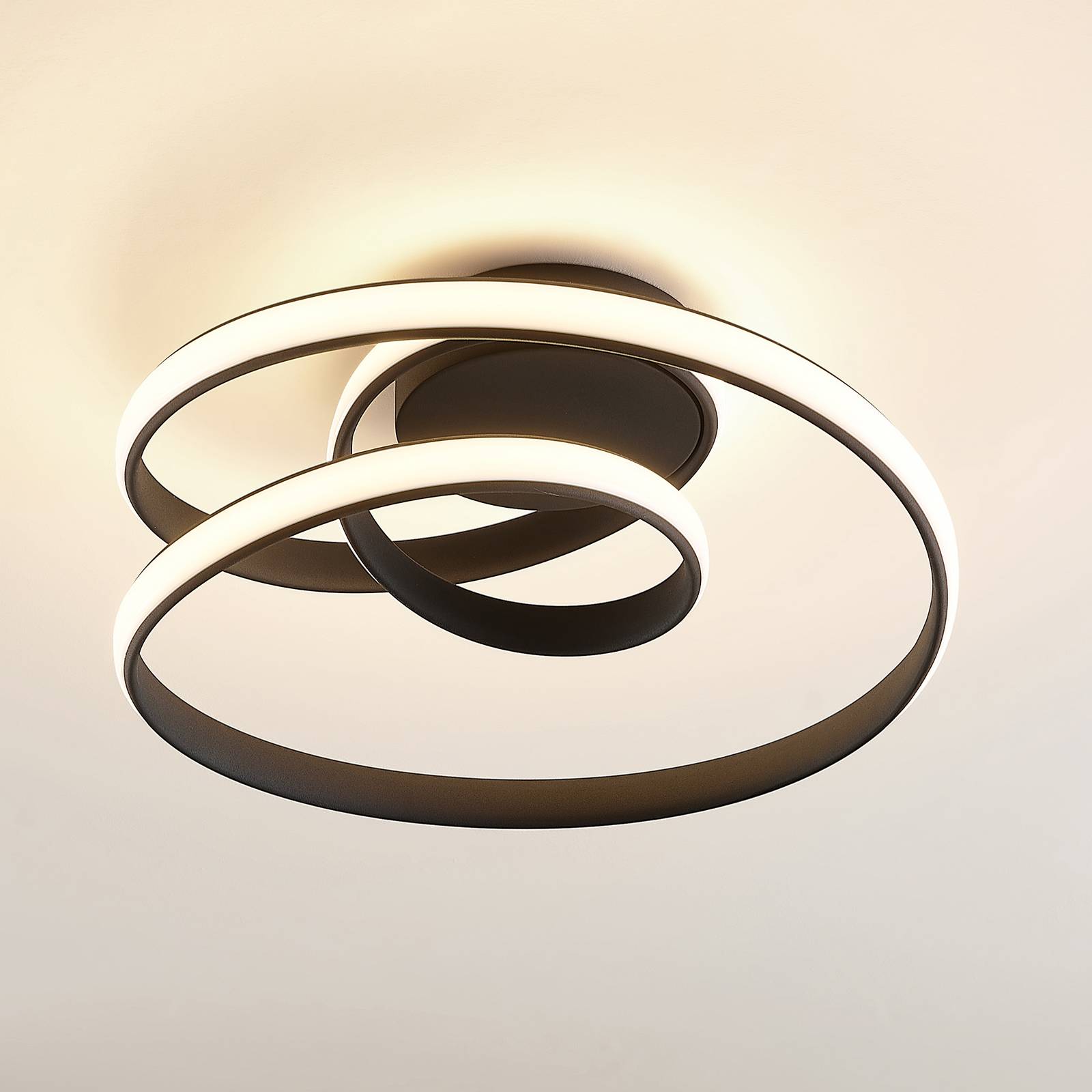 Lucande Sakina LED stropní svítidlo, pískově černá, Obývací pokoj / jídelna, Železo, hliník, silikon, 36W, K: 21cm