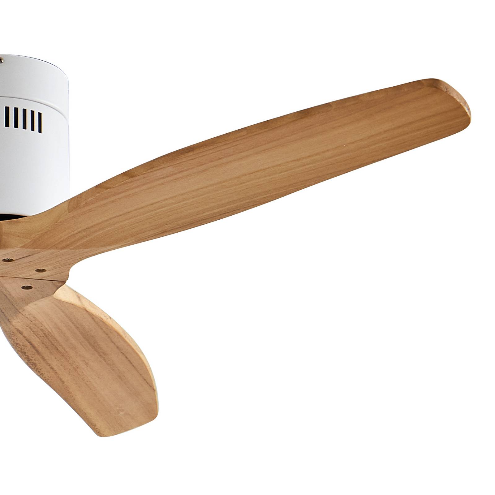 Lucande Stropní ventilátor Vindur, bílá/dřevo, DC, tichý, Ložnice, Dřevo, železo, K: 23cm