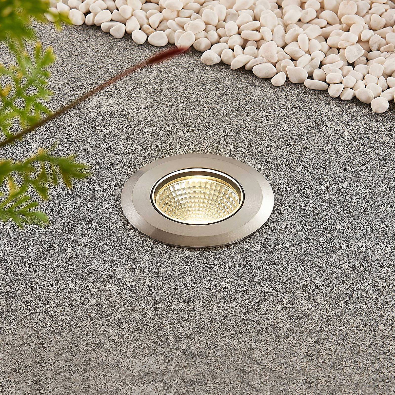 Lucande LED nerezové zemní zápustné svítidlo Sulea kulaté, nerez, sklo, 7.5W, K: 6.2cm