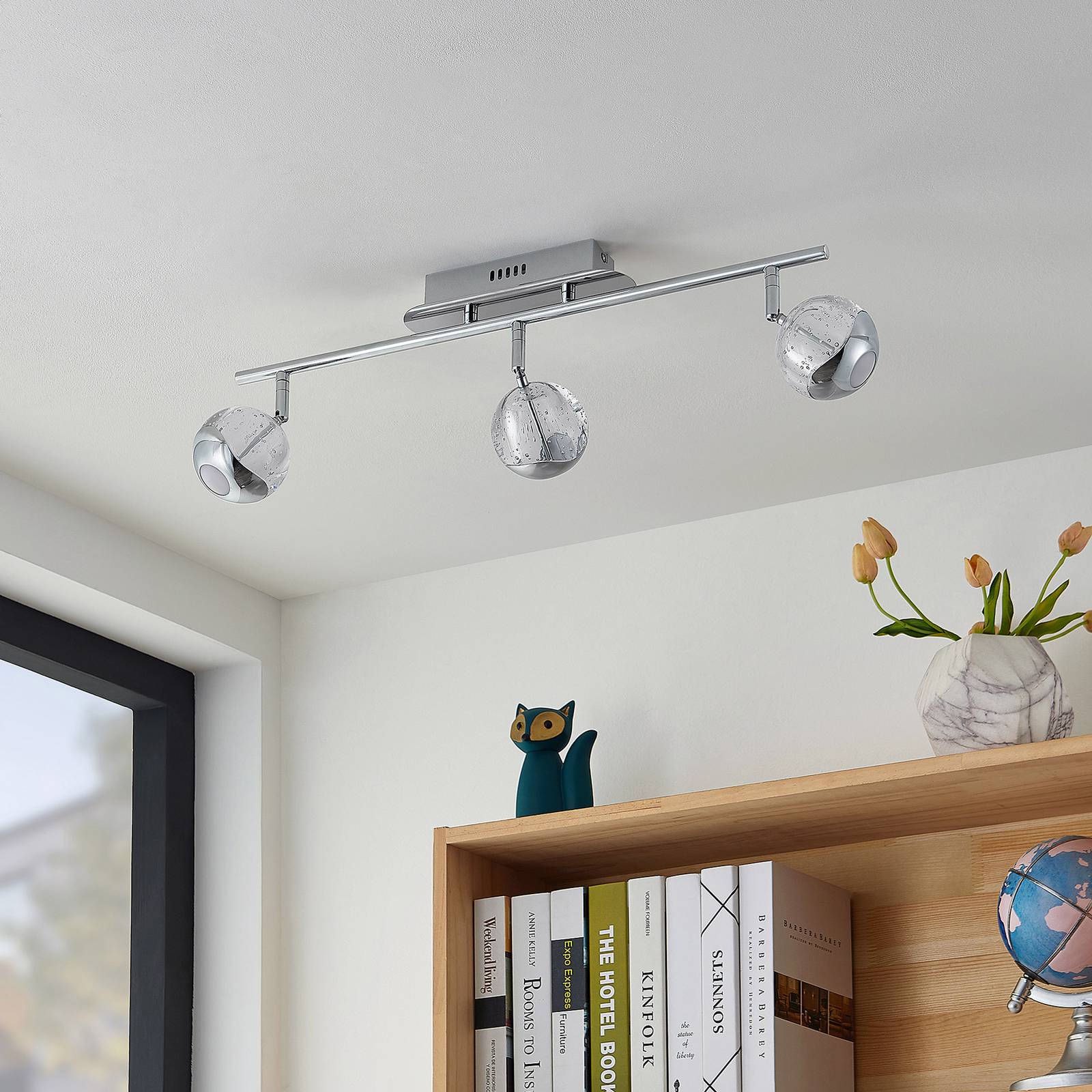 Lucande Kilio LED bodové osvětlení 3 zdroje chrom, Obývací pokoj / jídelna, ocel, sklo, 5W, P: 60 cm, L: 9 cm, K: 19.5cm