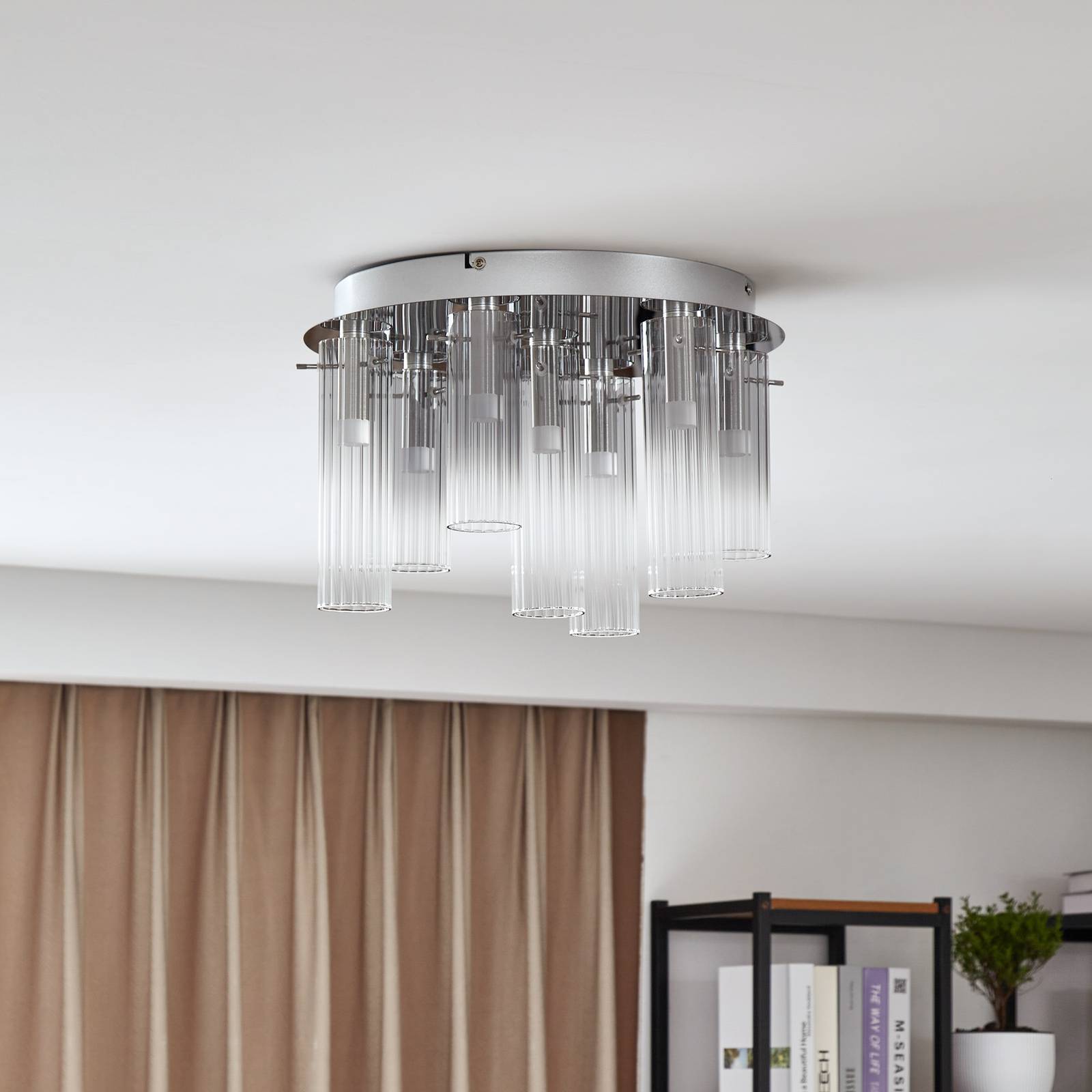 Lucande Stropní svítidlo LED Korvitha, 7 světel, šedá, sklo, Obývací pokoj / jídelna, Sklo, hliník, 25.9W, K: 26.5cm