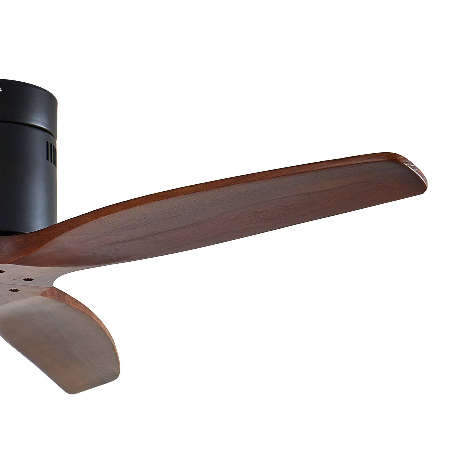 Lucande Stropní ventilátor Vindur, černá/dřevo, DC, tichý, Ložnice, Dřevo, železo, K: 23cm