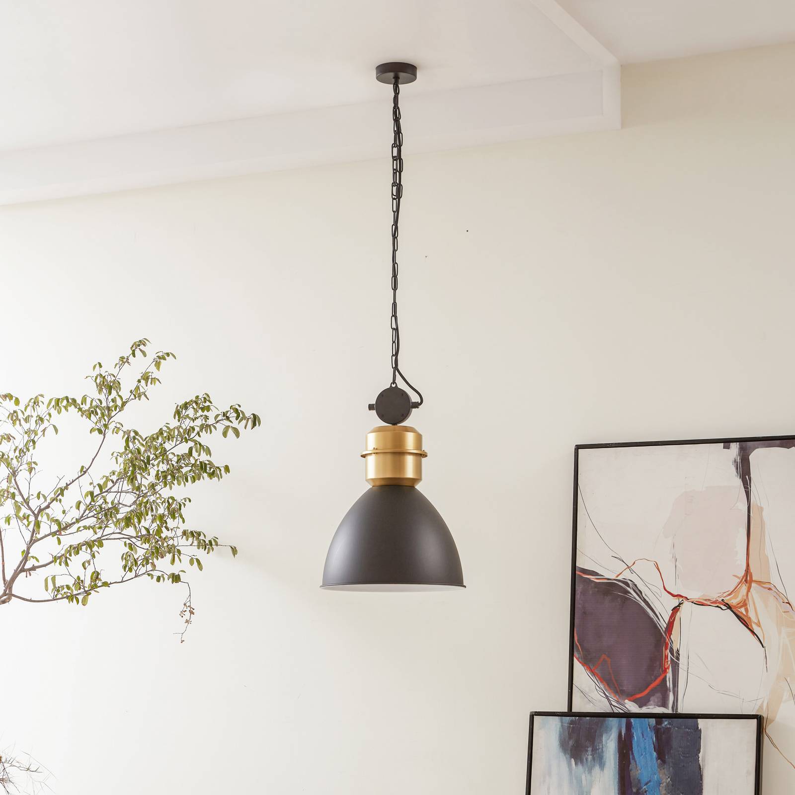 Lucande Závěsné svítidlo Kaeloria, černá/mosaz, hliník, Ø 35 cm, Obývací pokoj / jídelna, Hliník, E27, 15W, K: 50cm