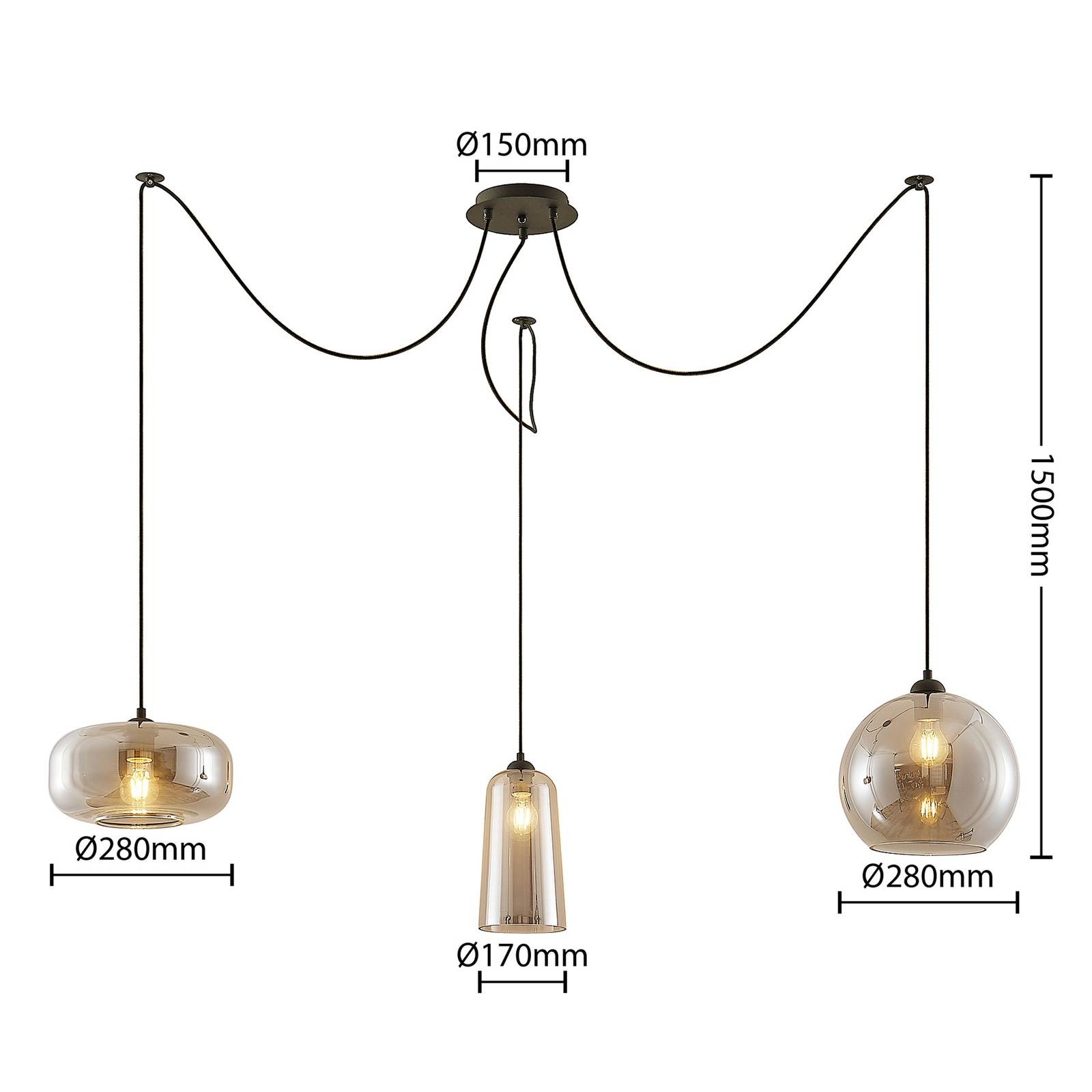 Lucande Zyli závěsné světlo, 3zdrojové, šedá, Obývací pokoj / jídelna, kov, sklo, E27, 60W