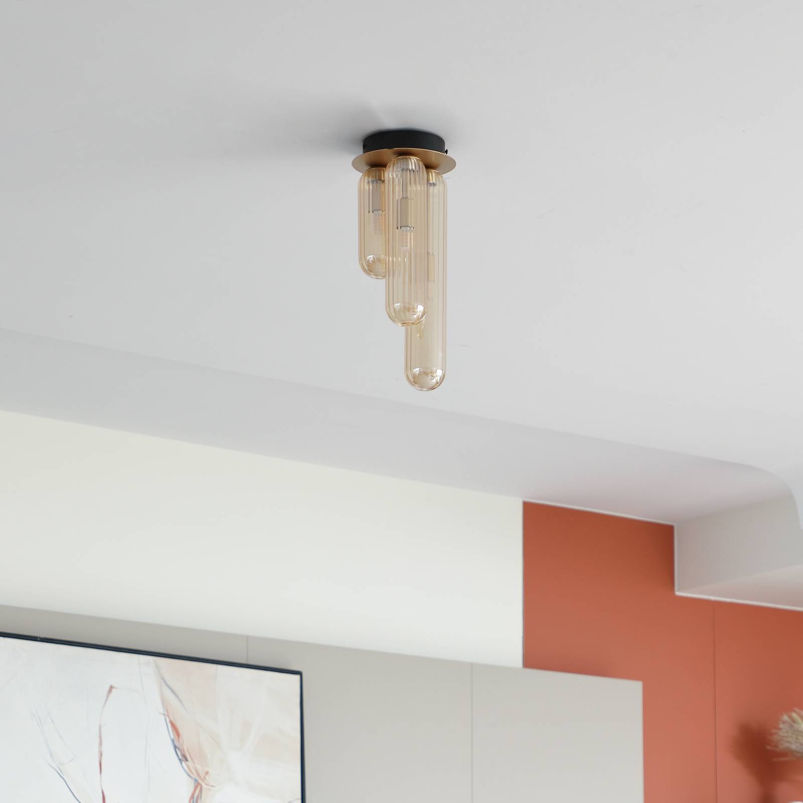 Lucande Stropní svítidlo Freylin, 3 světla, jantarová barva, sklo, 15 cm, Obývací pokoj / jídelna, Sklo, kov, G9, 8W, K: 35.5cm