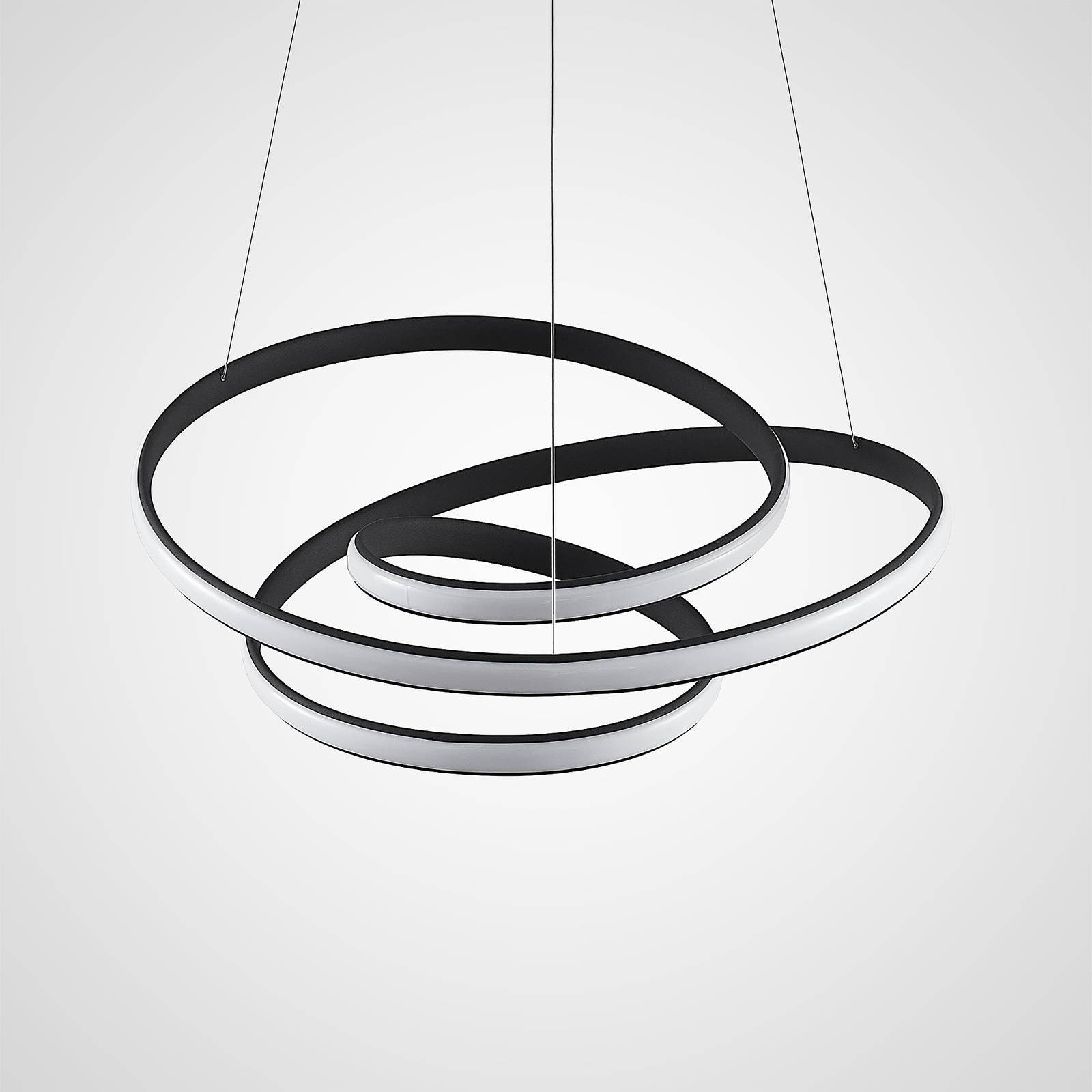 Lucande Sakina LED závěsné světlo černá Ø 58cm, Obývací pokoj / jídelna, Železo, hliník, silikon, 46.5W, K: 21cm