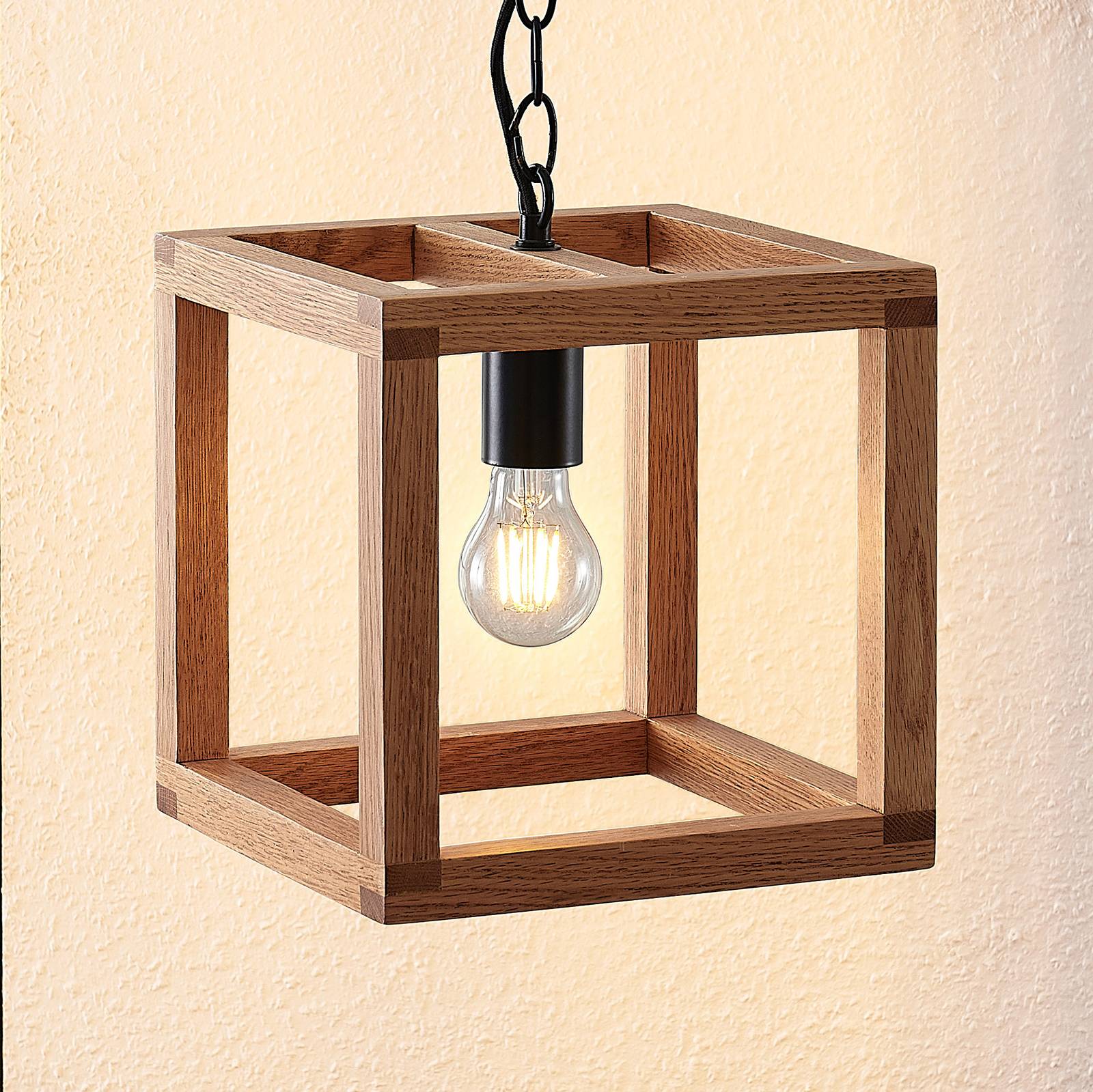 Lucande Sedrik závěsné světlo, jednožárovkové, Obývací pokoj / jídelna, kov, dřevo, E27, 60W, P: 25 cm, L: 25 cm, K: 25cm