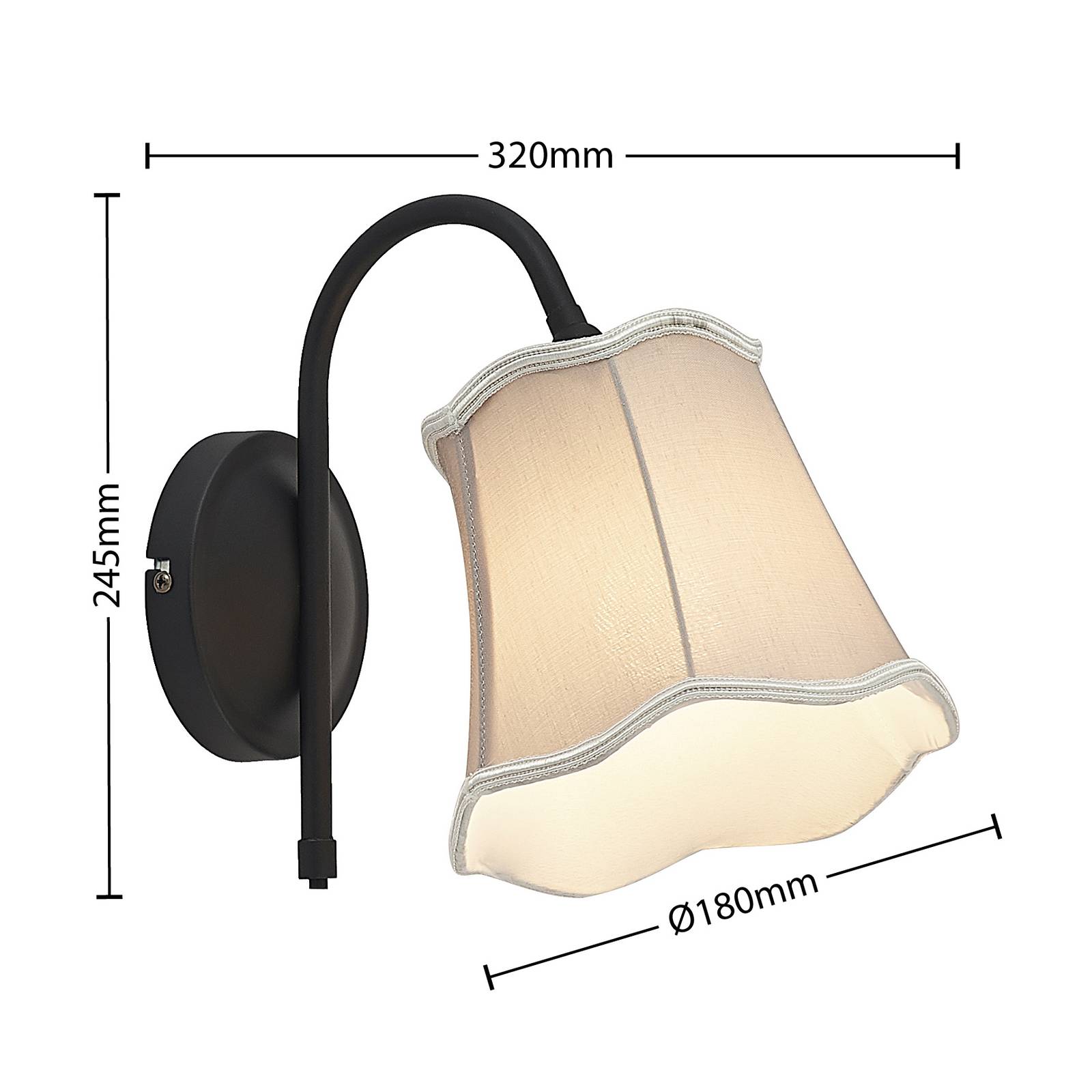 Lucande Binta nástěnné světlo, látka, vintage šedá, Obývací pokoj / jídelna, tkanina, železo, E14, 40W, L: 18 cm, K: 27cm