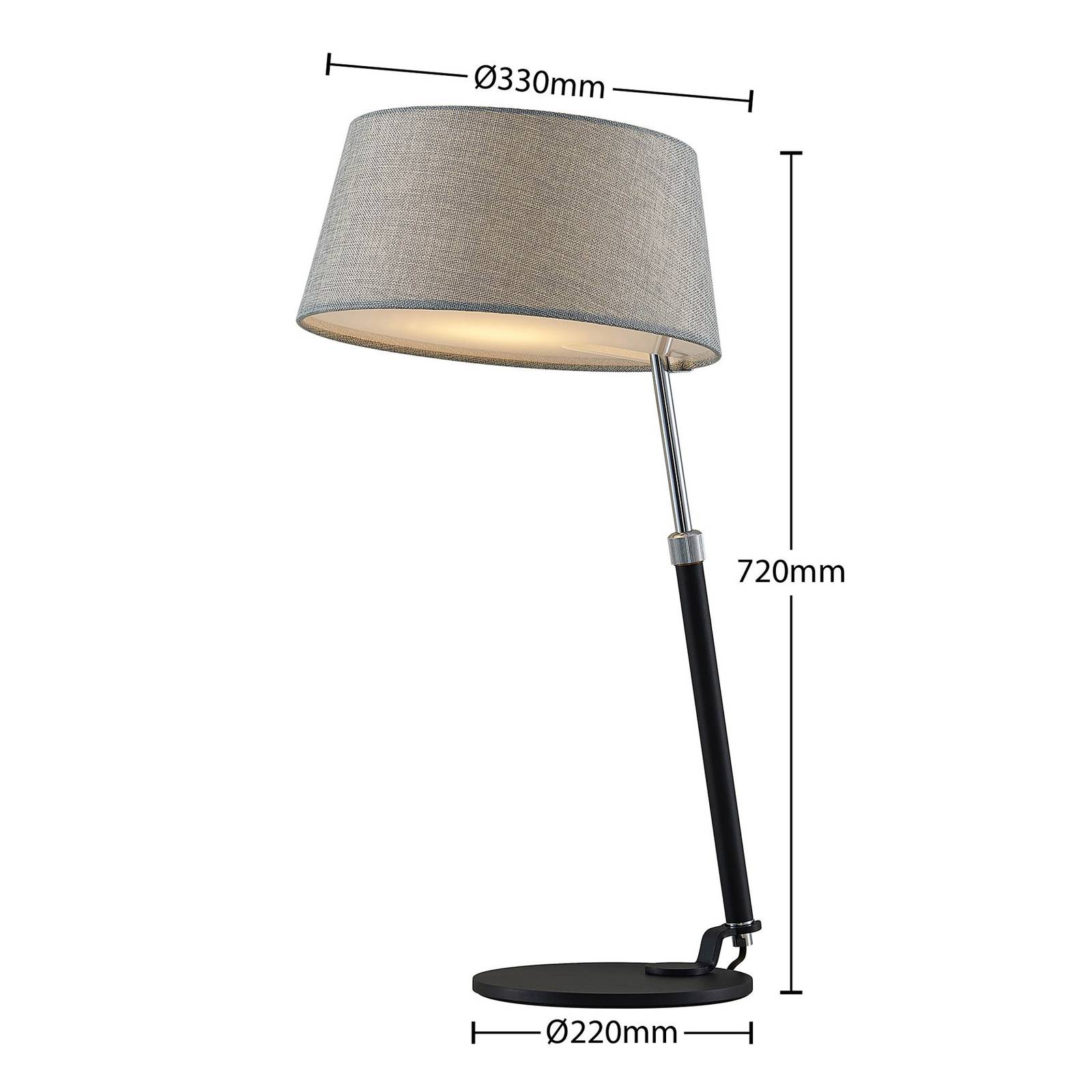 Lucande Janus stolní lampa výsuvné stínidlo, Obývací pokoj / jídelna, železo, hliník, textil, E27, 60W, L: 33 cm, K: 72cm