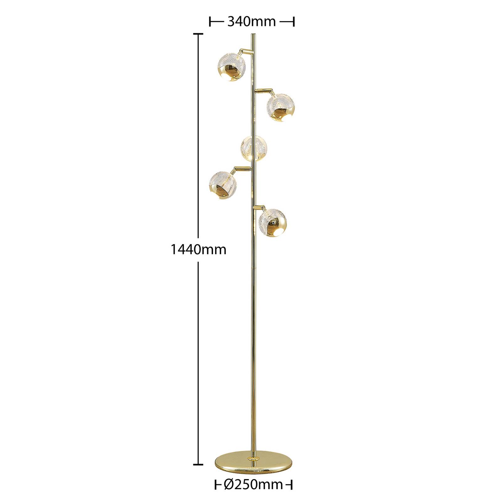 Lucande Kilio LED stojací lampa, stmívatelná zlatá, Obývací pokoj / jídelna, ocel, sklo, 5W, K: 140cm