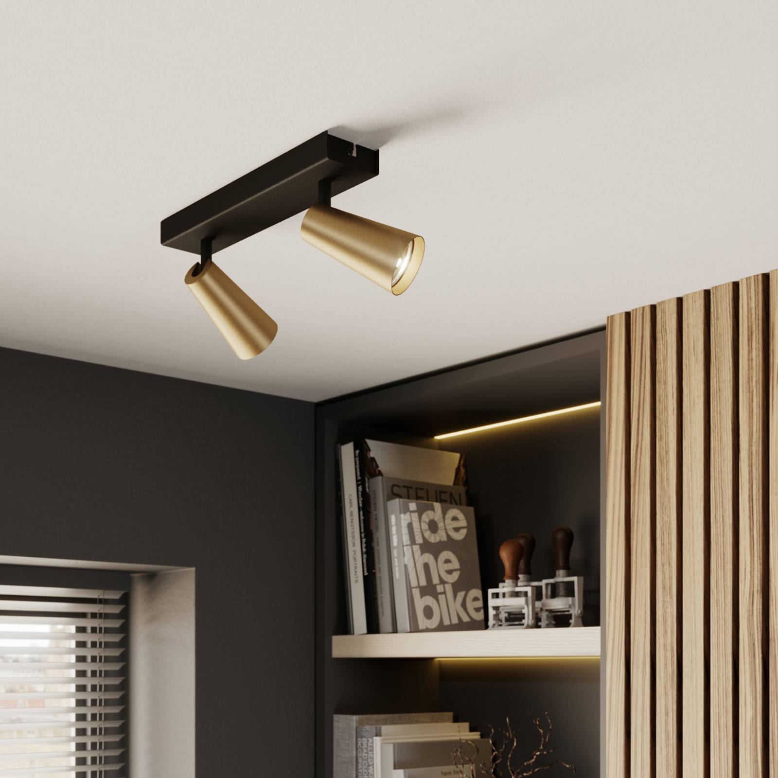 Lucande Angelina stropní světlo mosaz-zlatá, 2žár., Ložnice, kov, GU10, 8W, P: 28 cm, L: 6.5 cm, K: 16cm
