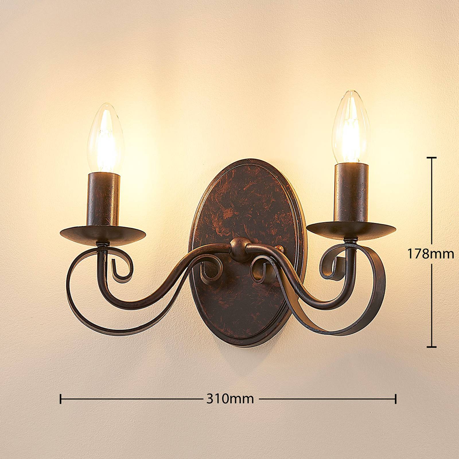 Lucande Rezavé nástěnné osvětlení Caleb, 2bodové, Chodba, kov, E14, 40W, L: 31 cm, K: 17.8cm