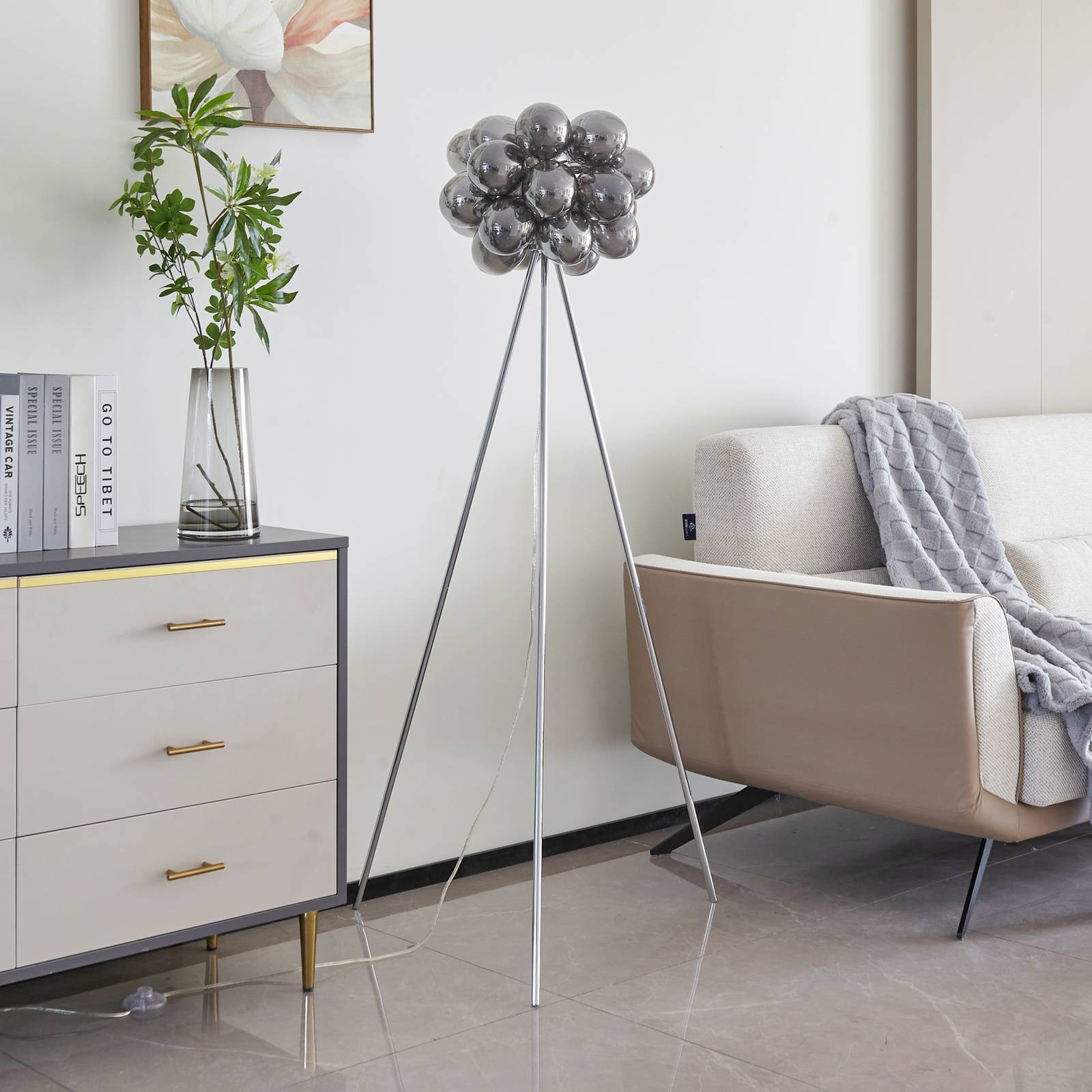 Lucande Stojací lampa Diborah, kouřově šedá, sklo, 150 cm, G9, Obývací pokoj / jídelna, Sklo, železo, G9, 8W, K: 150cm