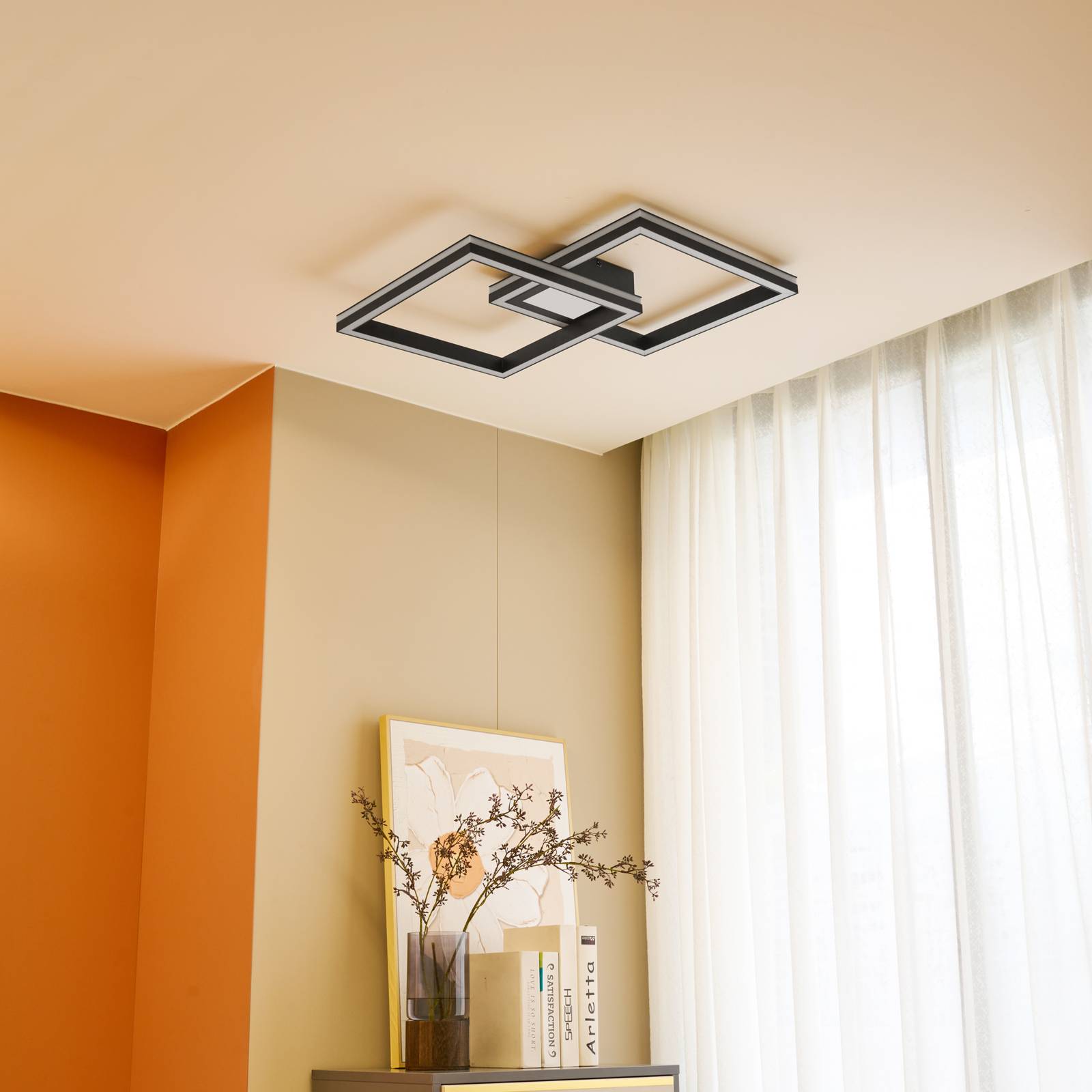 Lucande Stropní svítidlo Smart LED Tjado, 85 cm, černé, RGB, CCT, Obývací pokoj / jídelna, Kov, plast, 30W, P: 85 cm, L: 57 cm, K: 8.5cm