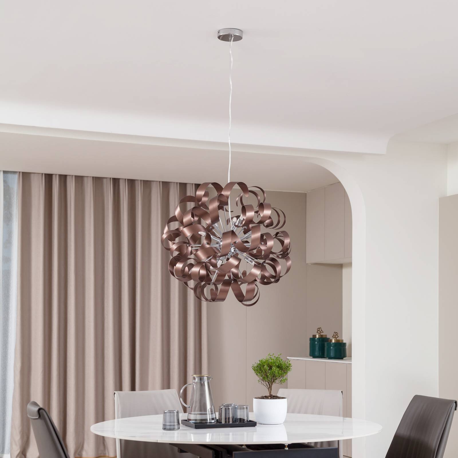Lucande Závěsná lampa Kaelor, Ø 60 cm, měděná barva, hliník, Obývací pokoj / jídelna, Hliník, G9, 8W