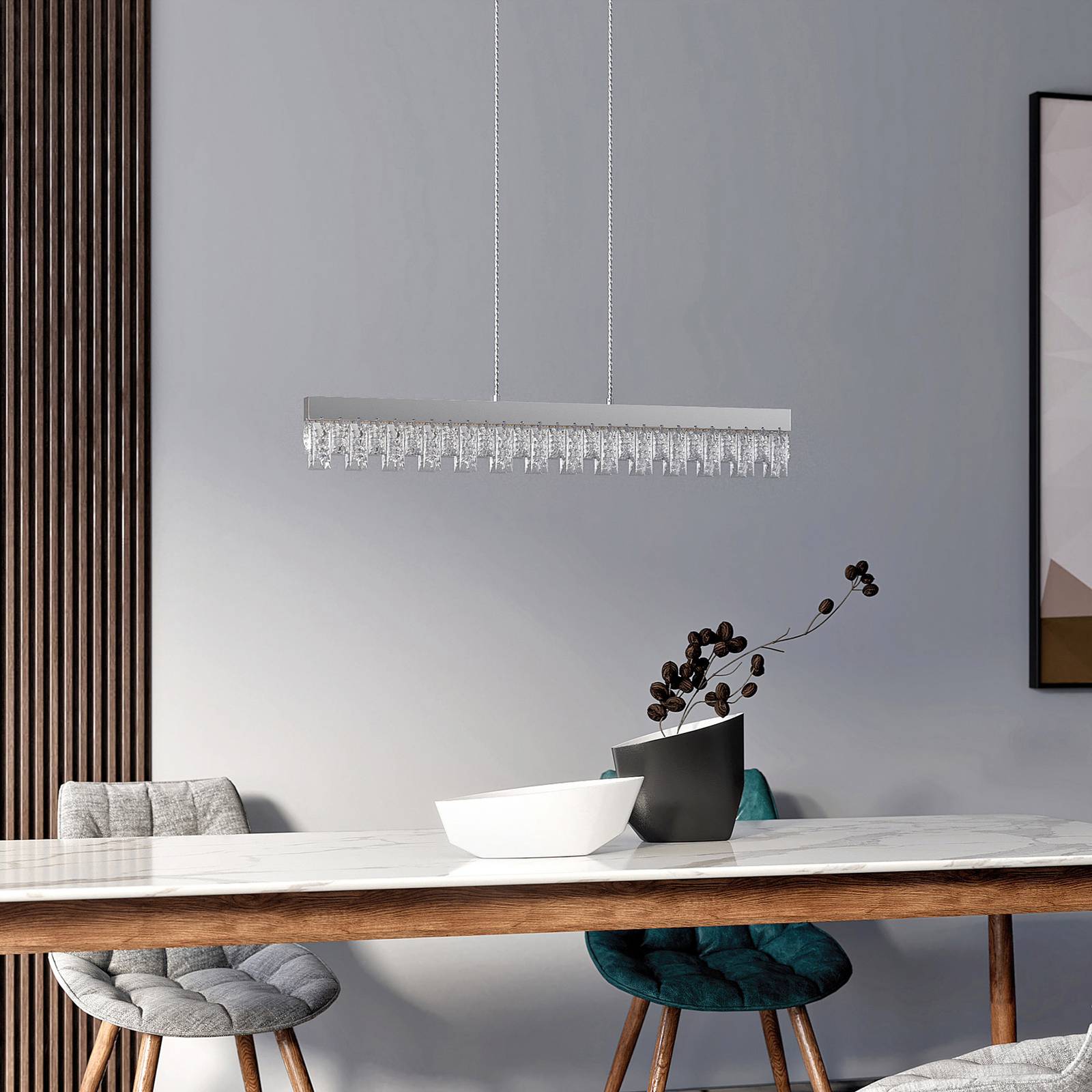 Lucande Bayano LED závěsné svítidlo s krystaly, Obývací pokoj / jídelna, železo, křišťál, 15W, P: 85.8 cm, L: 6.4 cm, K: 13.4cm
