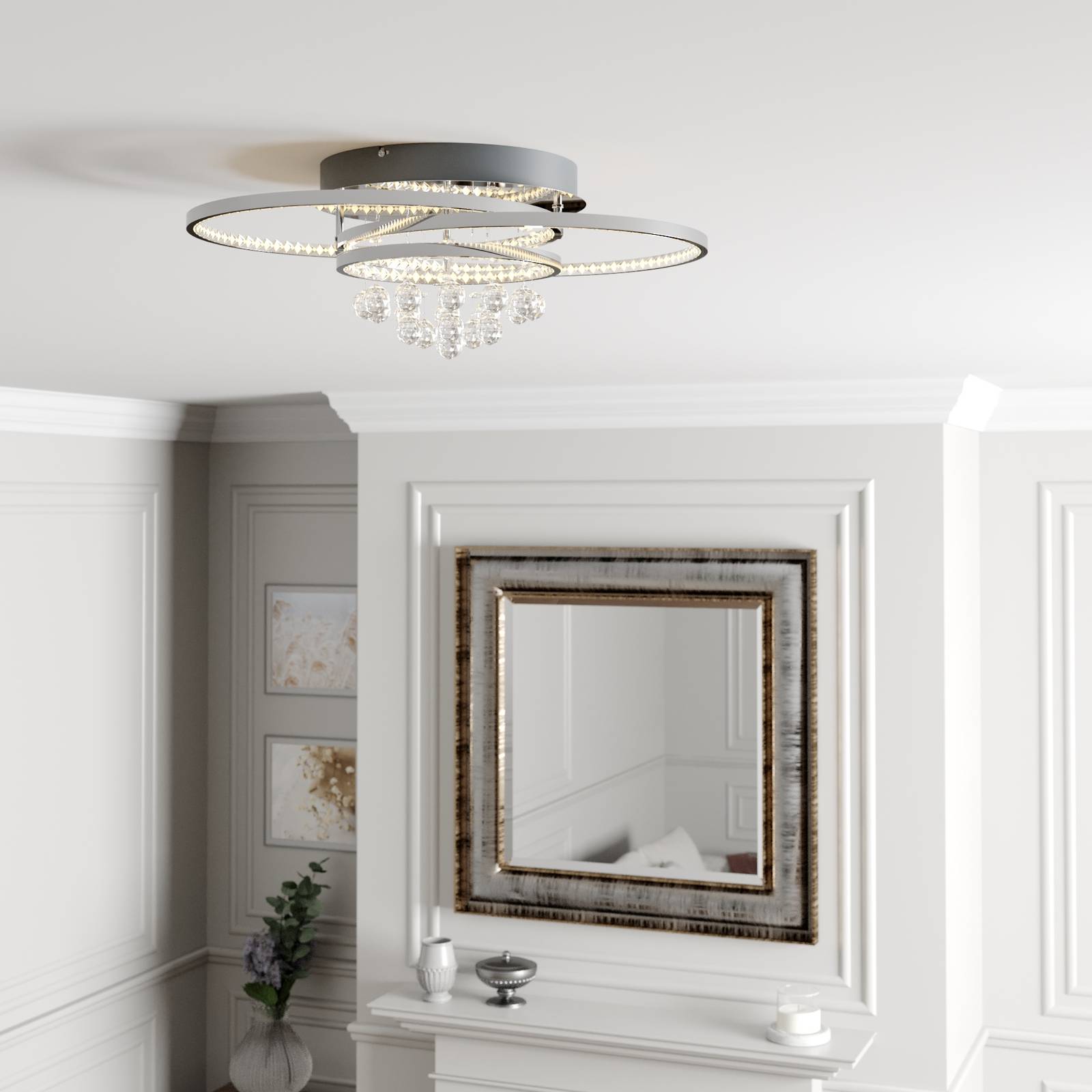 Lucande Keely LED stropní svítidlo Crystal 56, 5 cm, Obývací pokoj / jídelna, Železo, krystal, hliník, 46.8W, P: 56.5 cm, L: 40.5 cm, K: 20cm
