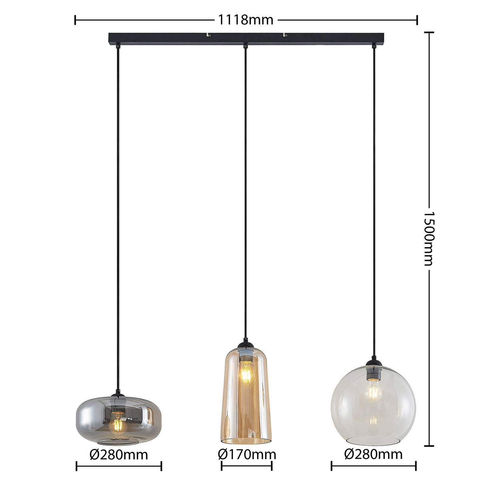 Lucande Skleněná závěsná lampa Wilja, 3 světla, tříbarevná, Obývací pokoj / jídelna, Kov, sklo, E27, 60W, P: 111.8 cm, L: 28 cm