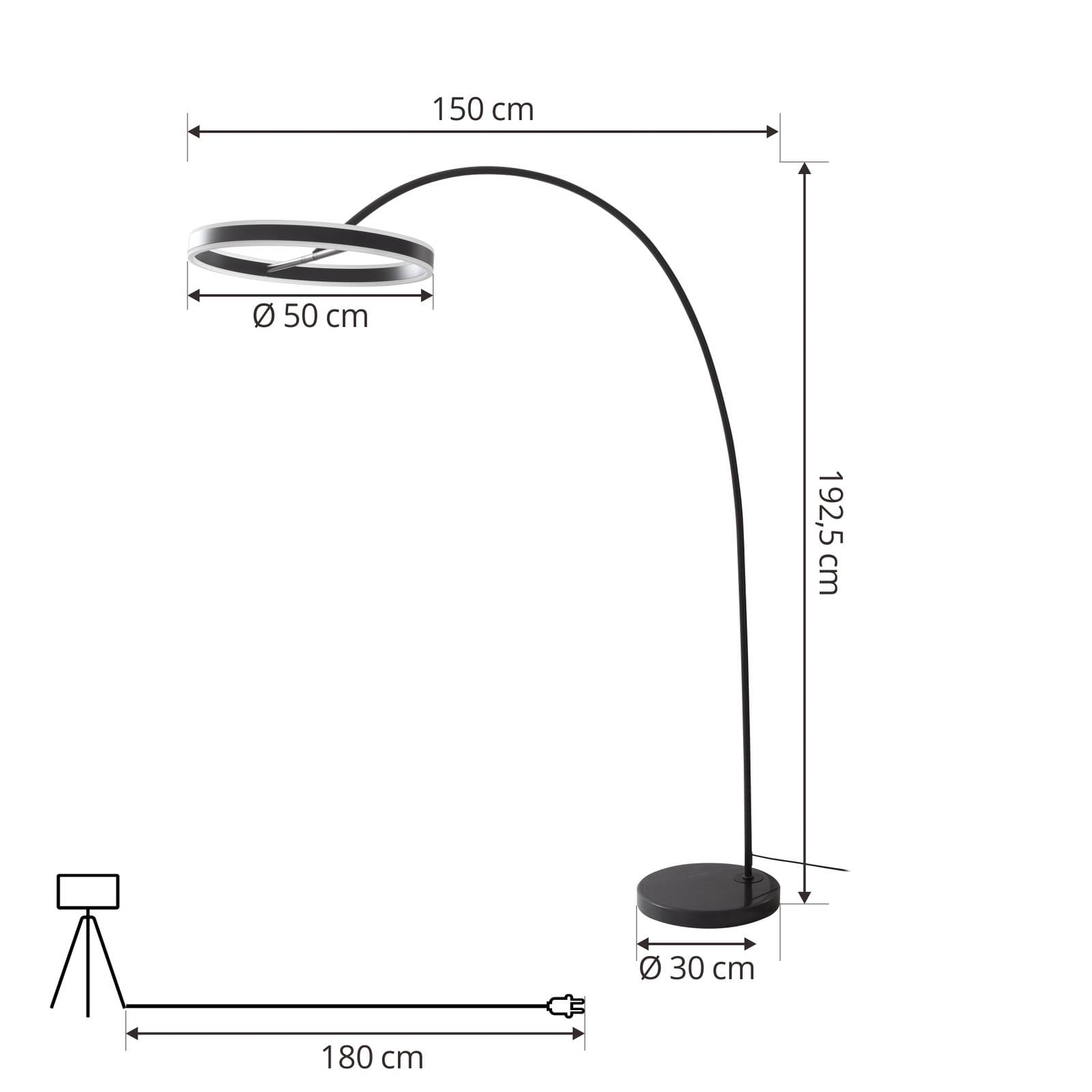 Lucande Oblouková stojací lampa LED Yekta, 3stupňová, černá, Obývací pokoj / jídelna, Železo, akryl, 31W, K: 182.5cm