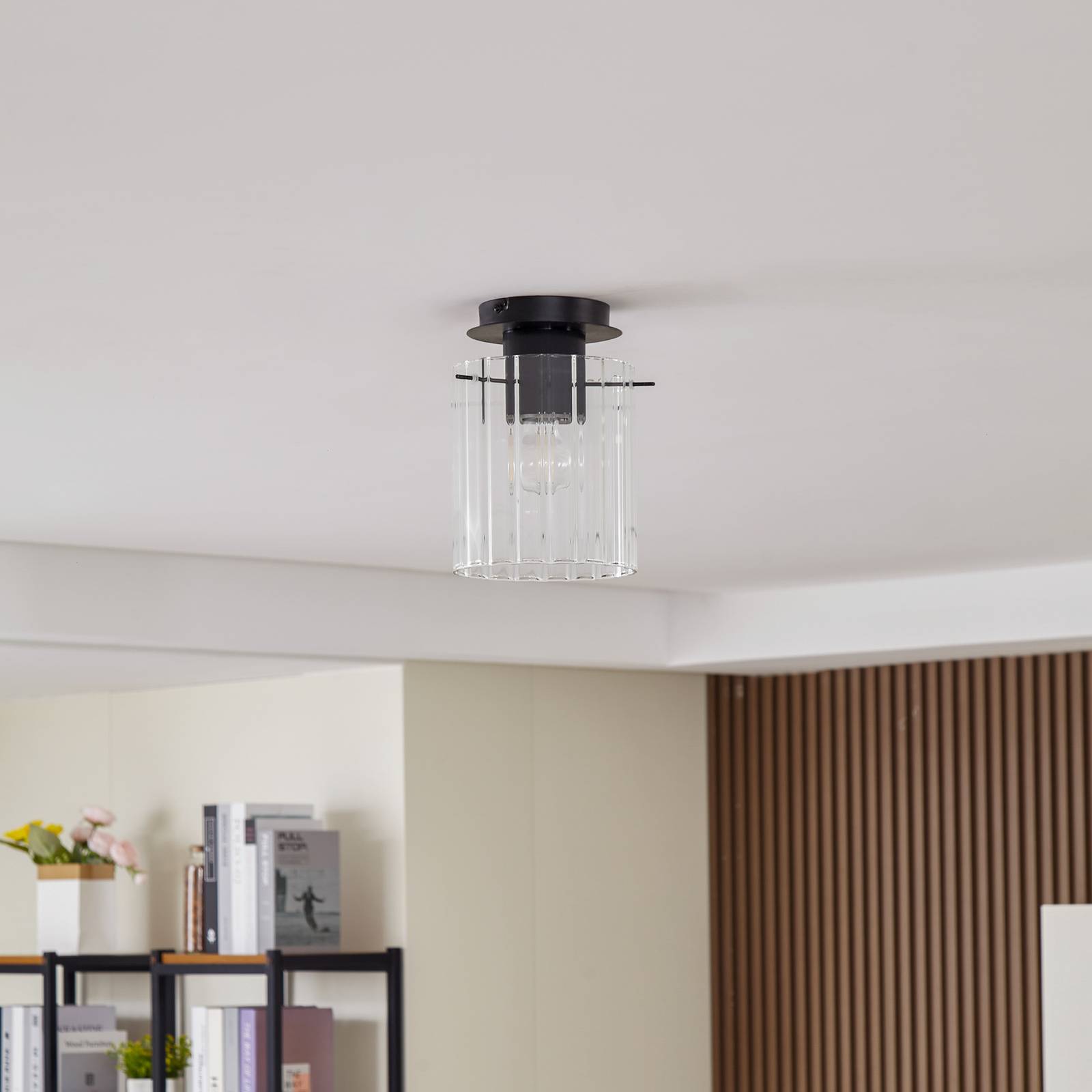Lucande Stropní svítidlo Eirian, 1 světlo, černé, sklo, E27, Obývací pokoj / jídelna, Sklo, kov, E27, 15W, K: 25.5cm