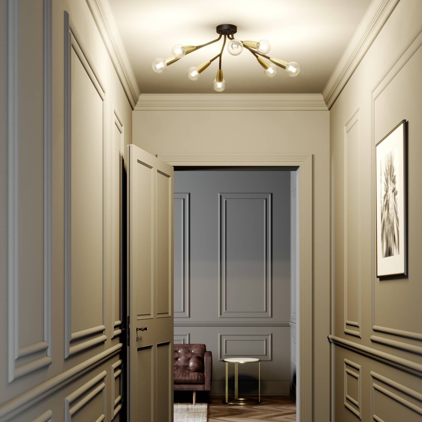 Lucande Carlea stropní světlo, 8žár. černá-mosaz, Obývací pokoj / jídelna, kov, hliník, E27, 60W, K: 28cm