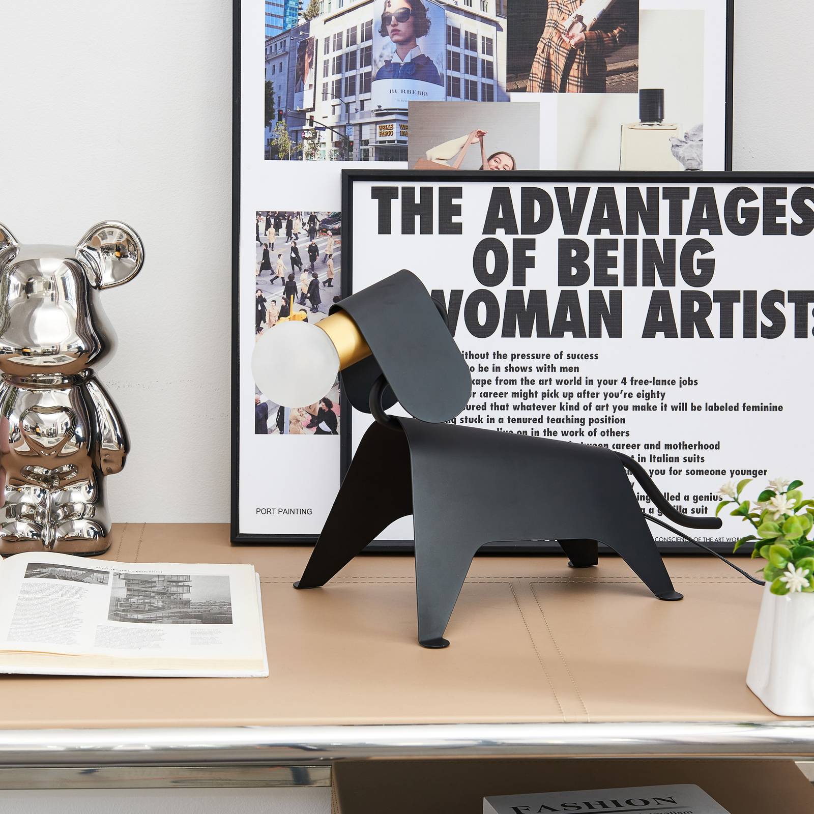 Lucande Stolní lampa Idalina LED, pes, černá, Obývací pokoj / jídelna, Iron, G4, 2W, P: 41 cm, L: 20.6 cm, K: 24cm