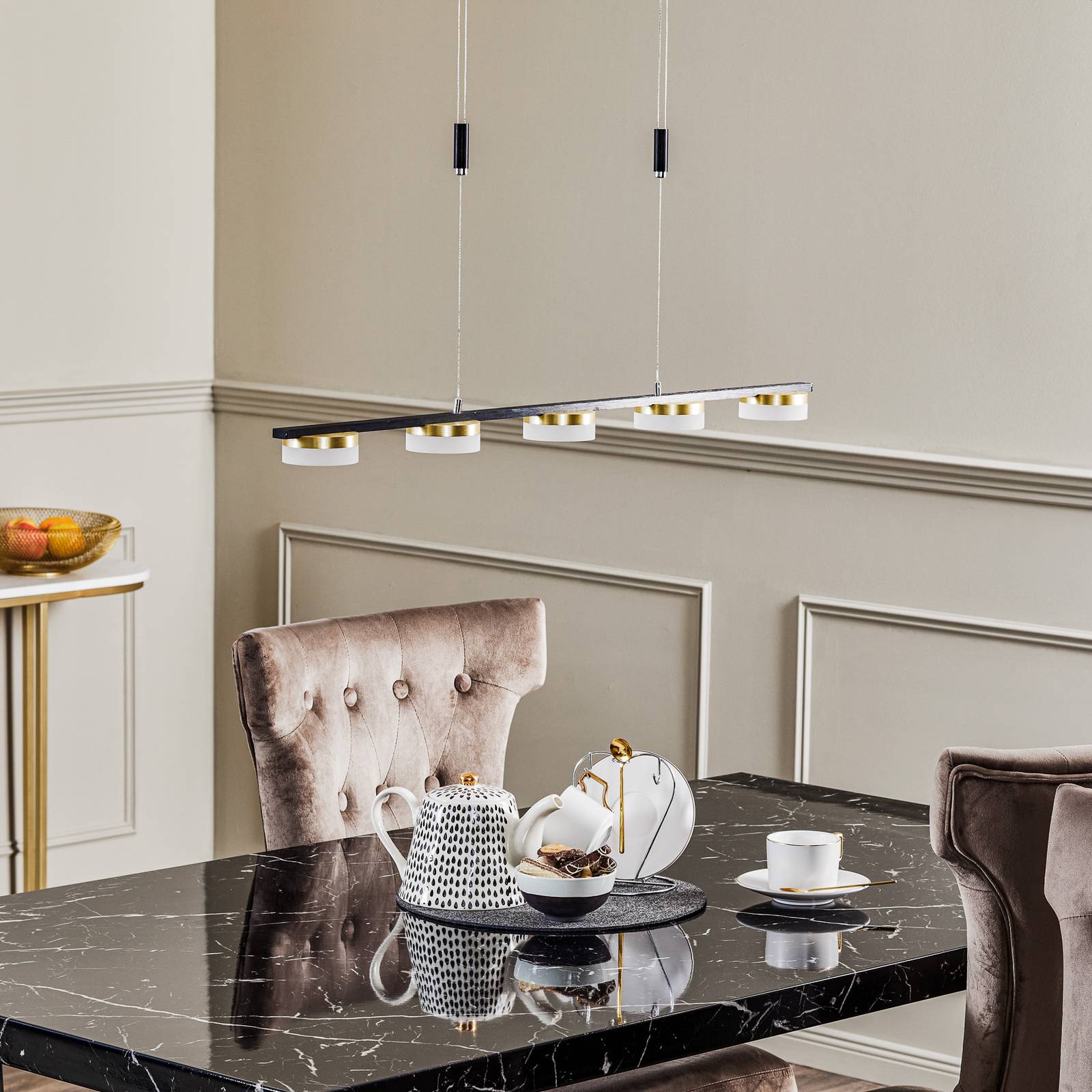 Lucande Kyree LED závěsné světlo antracit zlatá, Obývací pokoj / jídelna, hliník, plast, 8W, P: 83 cm, L: 8 cm