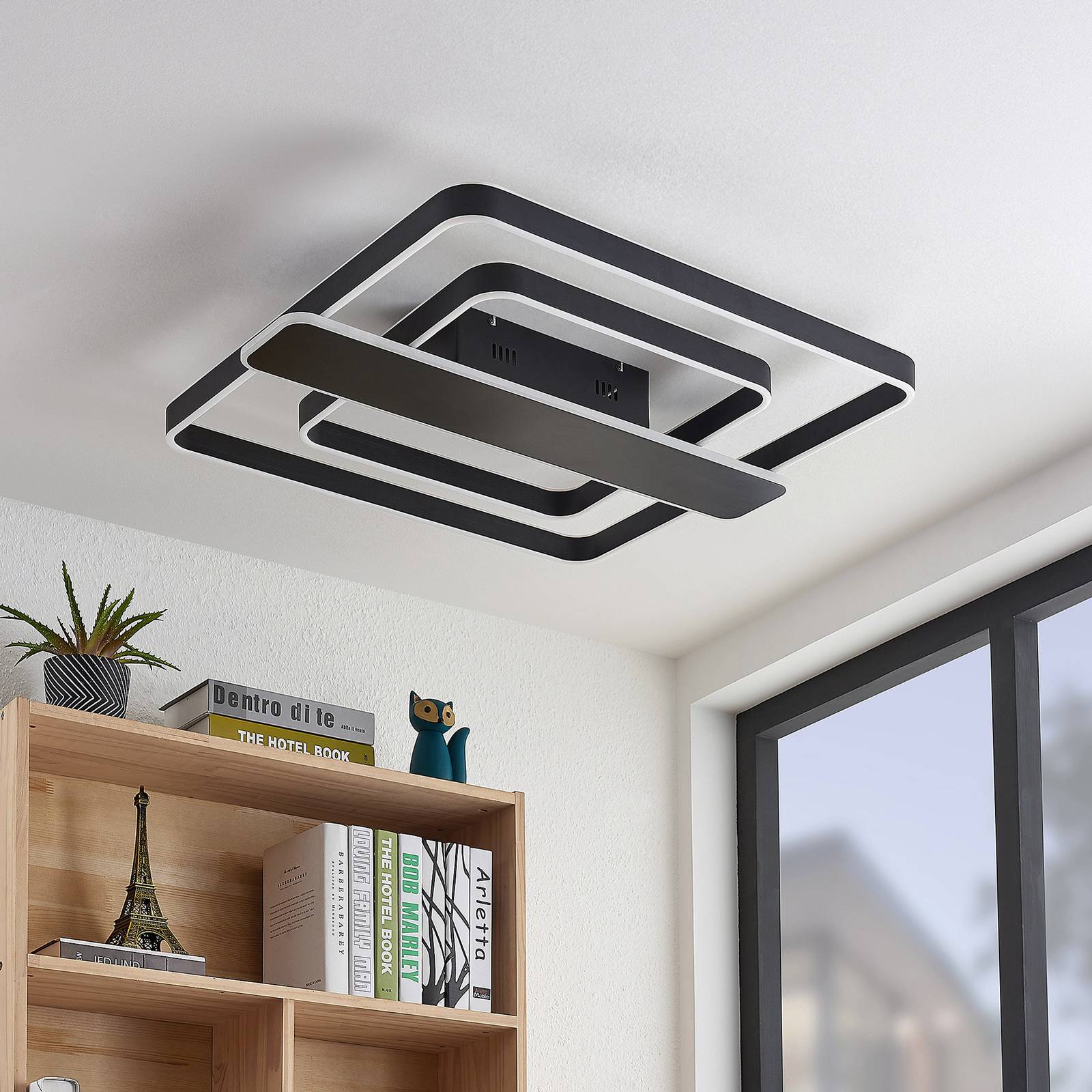 Lucande Linetti LED stropní hranaté černá 70cm, Obývací pokoj / jídelna, hliník, železo, silikon, 58W, P: 78.8 cm, L: 70.7 cm, K: 10cm