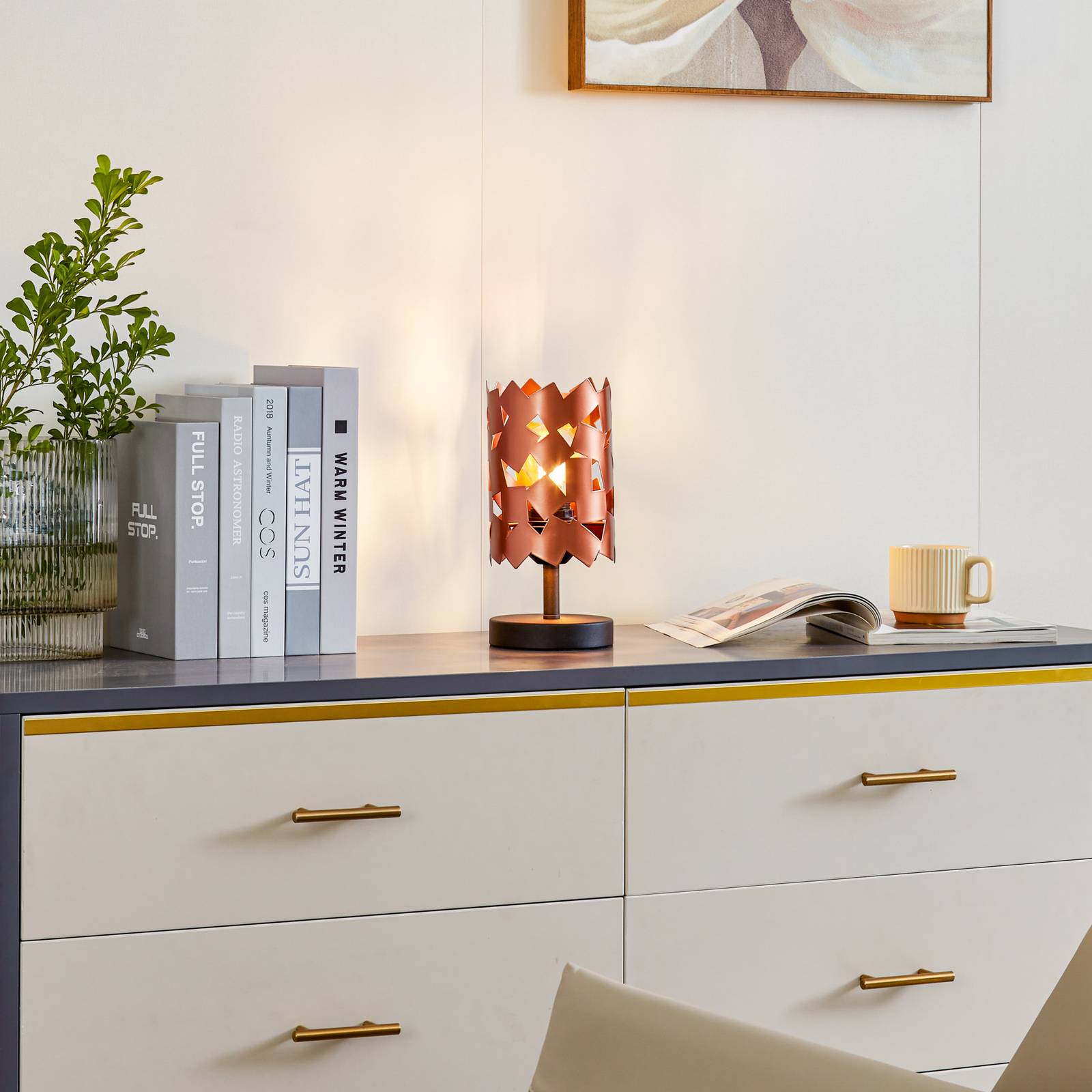 Lucande Stolní lampa Aeloria, měď, železo, Ø 12 cm, E27, Obývací pokoj / jídelna, Železo, kov, E27, 15W, K: 25cm
