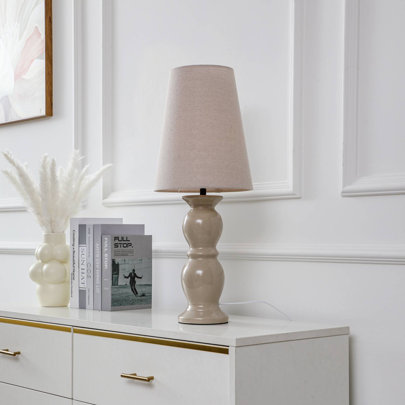 Lucande Stolní lampa Lyndorin, béžová barva, keramika, Obývací pokoj / jídelna, Keramika, textil, E27, 15W, K: 63.1cm