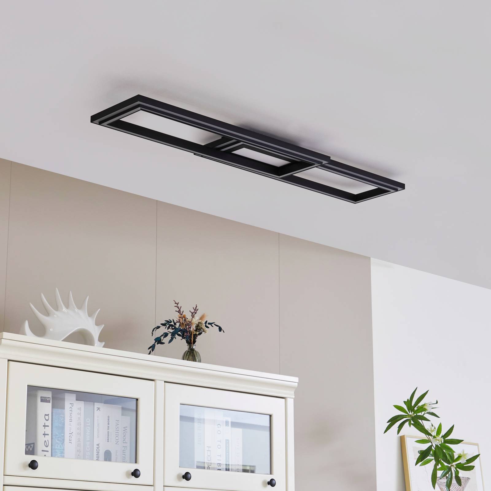 Lucande Stropní svítidlo Smart LED Tjado 115 cm černé RGB CCT, Obývací pokoj / jídelna, Kov, plast, 31W, P: 115 cm, L: 30 cm, K: 7.55cm